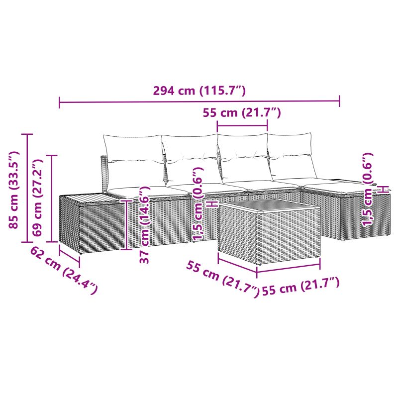 • Delivery Contains: 5 pieces set including sofa, cushions, and table