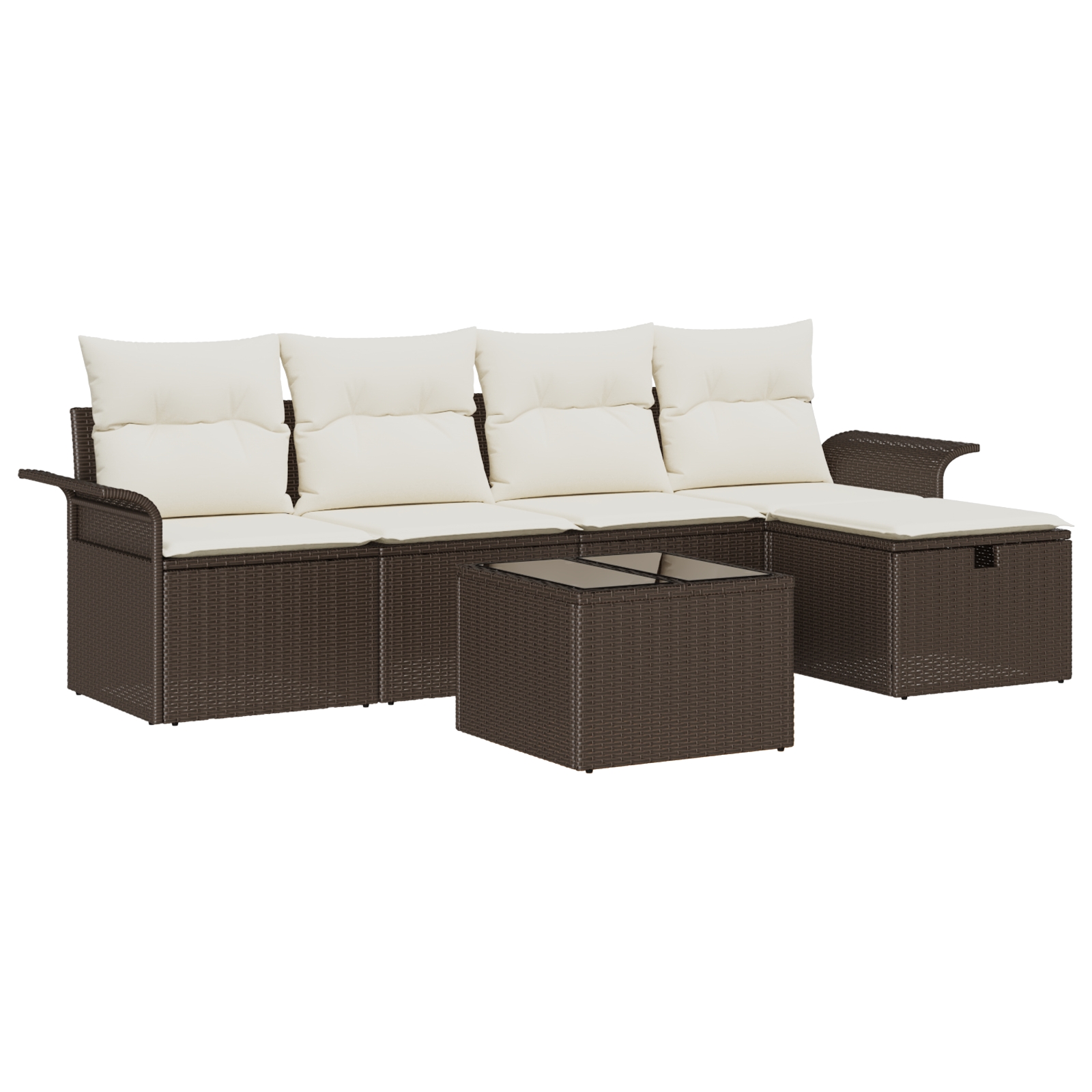 vidaXL 6-dielna súprava záhradných pohoviek s vankúšmi hnedá polyratan