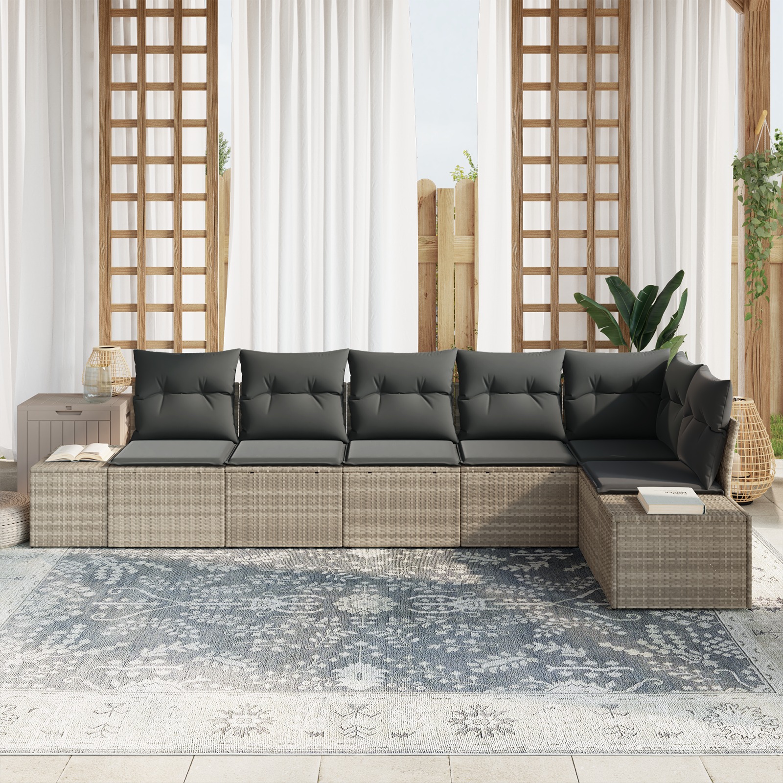 vidaXL 6-dielna súprava záhradných pohoviek so vankúšmi, svetlosivá, poly ratan.
