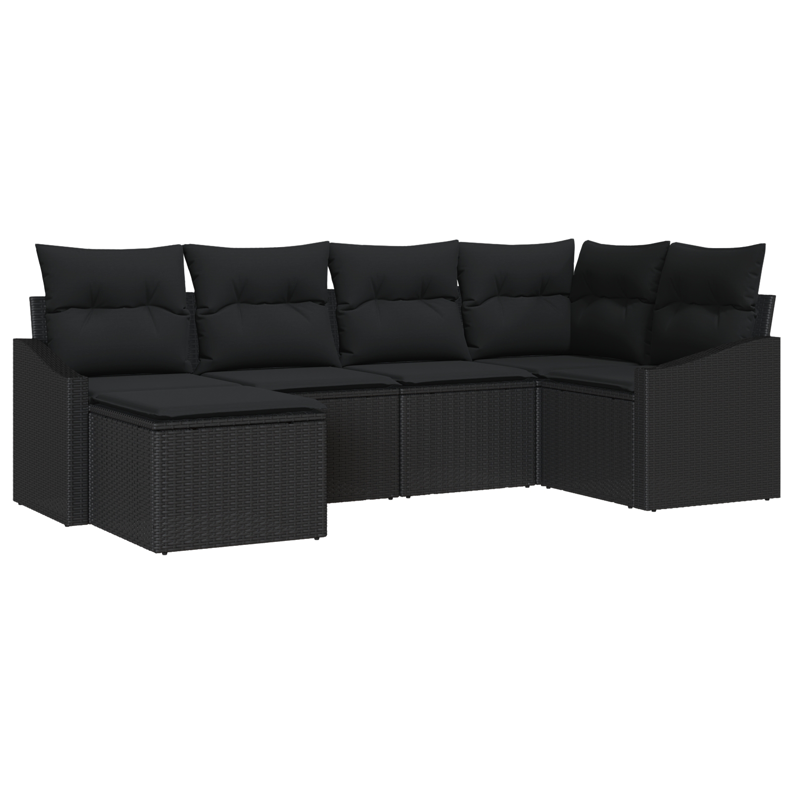 vidaXL 6-dielna záhradná jedálenská súprava s vankúšmi čierny poly ratan
