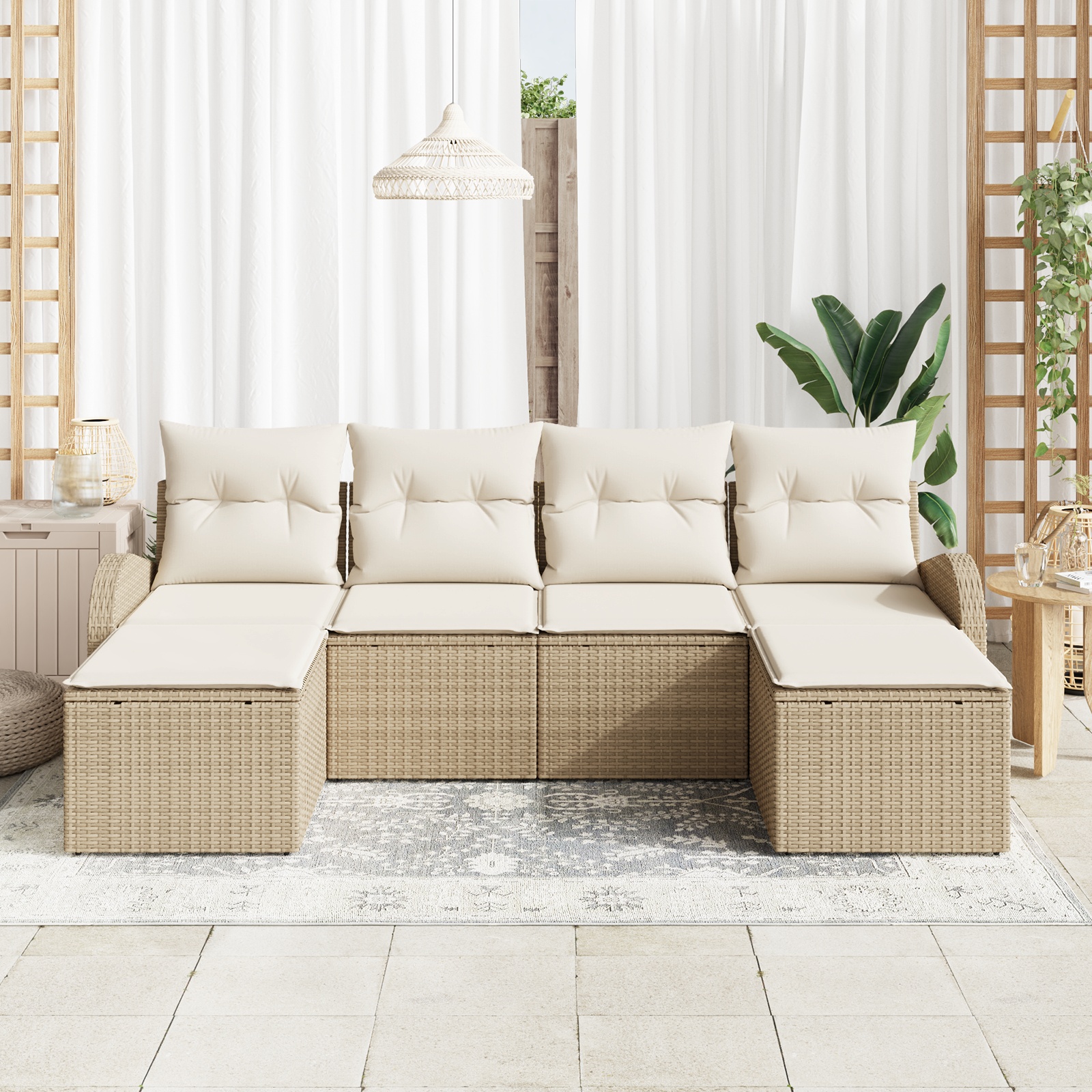 • Štýlová estetika: Kombinácia béžového ratanu a krémových vankúšov dodáva elegantný vzhľad vonkajším priestorom.