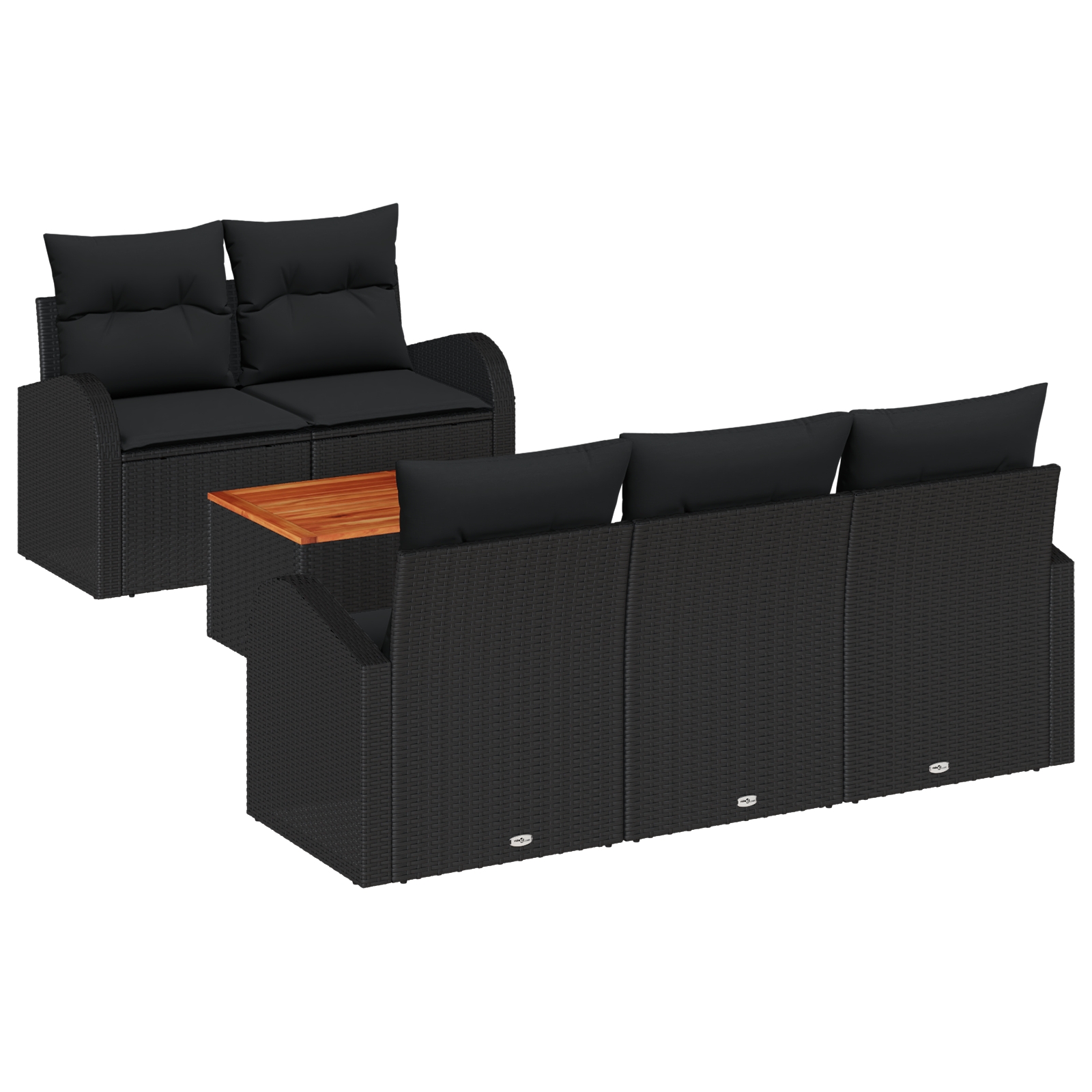 vidaXL 6-Dielna Záhradná pohovka so vankúšmi Čierna Poly Ratan Akácia