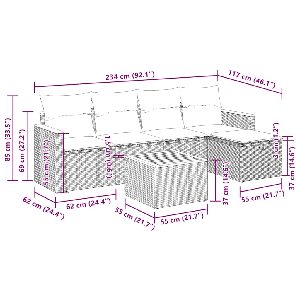 vidaXL 6-dielna záhradná sedacia súprava s podložkami polyratan sivá