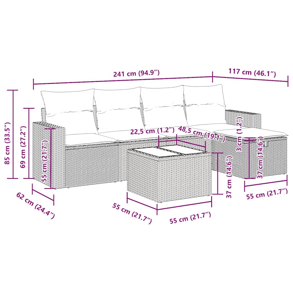 vidaXL 6-dielna záhradná sedacia súprava s vankúšmi hnedá polyratanová