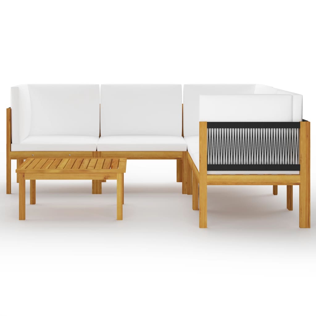 vidaXL 6-dielna záhradná sedacia súprava+podložky, krémová, akácia