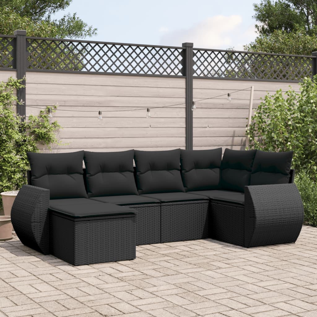 vidaXL 6-dielna záhradná súprava pohoviek s vankúšmi čierna polyratan