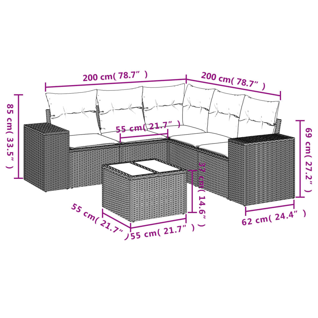 vidaXL 6-dielna záhradná súprava pohoviek s vankúšmi čierna polyratan