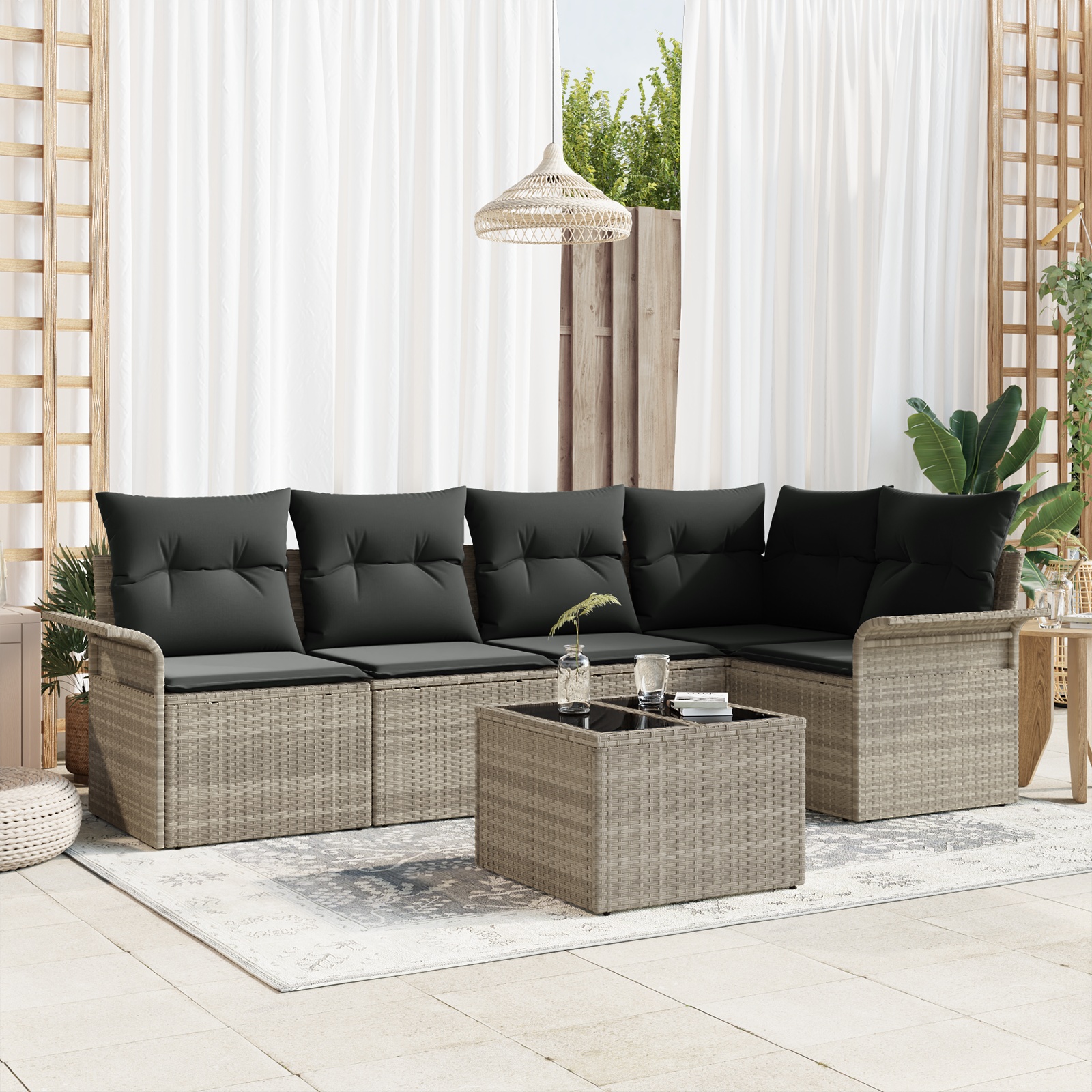 vidaXL 6-dielna záhradná súprava pohoviek so vankúšmi svetlosivý poly ratan