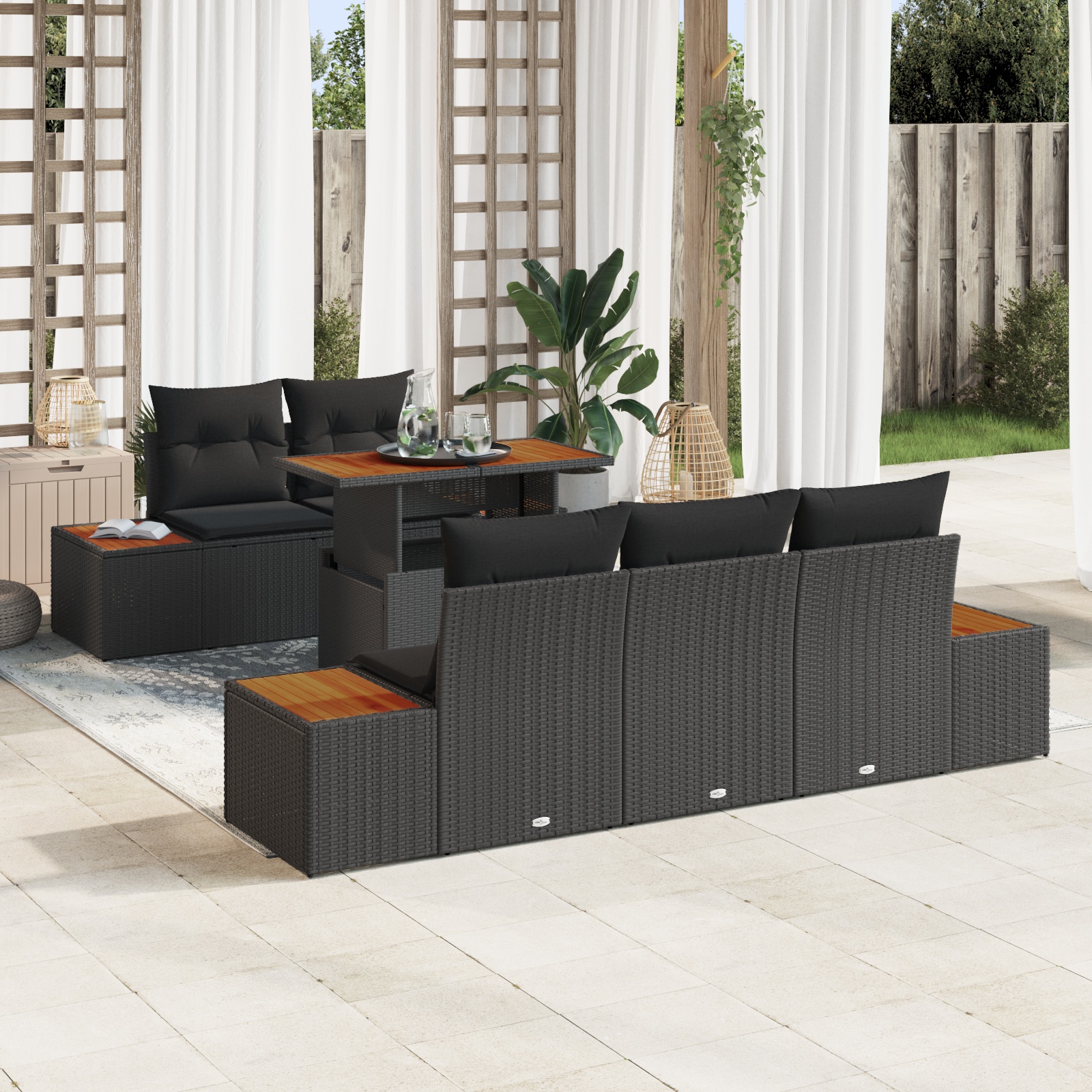 vidaXL 6-dielny záhradný jedálenský set s vankúšmi čierny poly ratan akácia
