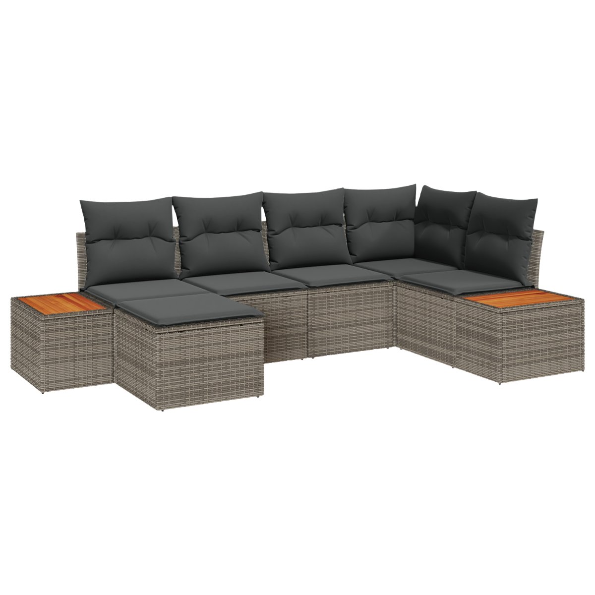 vidaXL 6 kusová záhradná pohovka s poduškami Sivá Poly Ratan Akácia