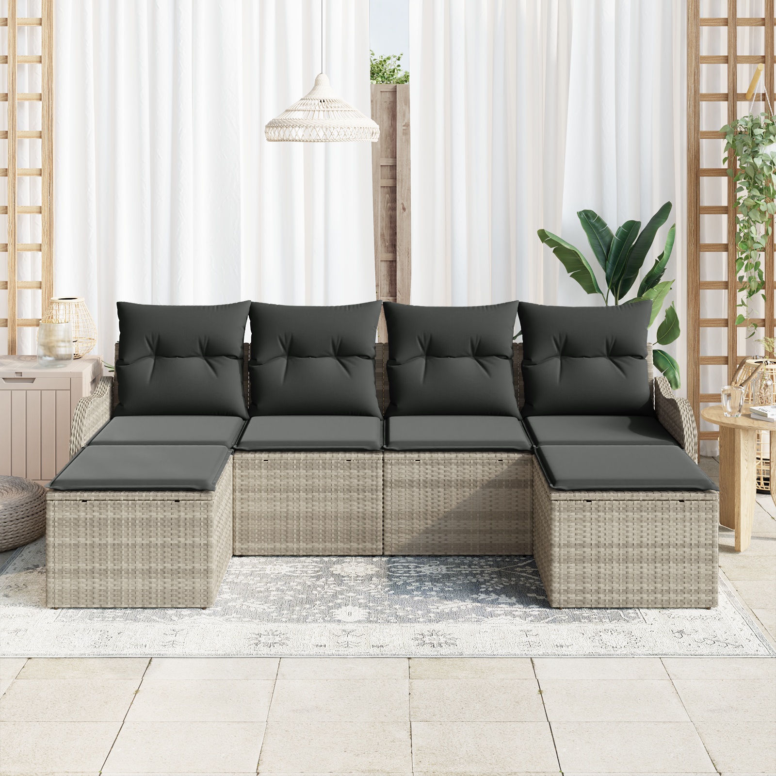 vidaXL 6dielna záhradná pohovka s vankúšmi svetlosivá poly ratan