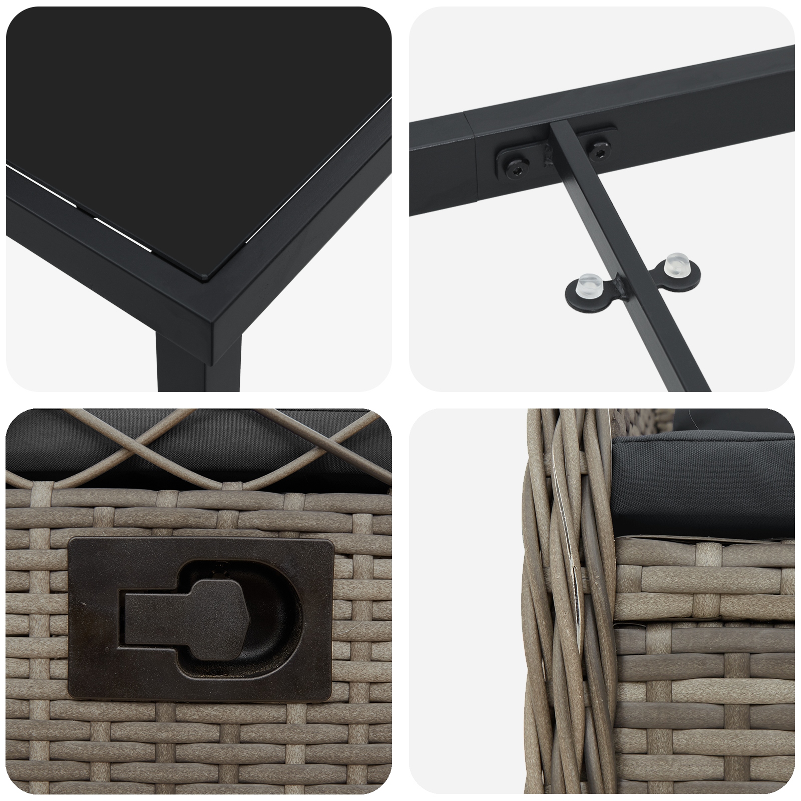• Odolný PE ratan je odolný voči počasiu a ľahko sa udržiava, ideálny na vonkajšie použitie počas celého roka s estetikou prírodného ratanu.