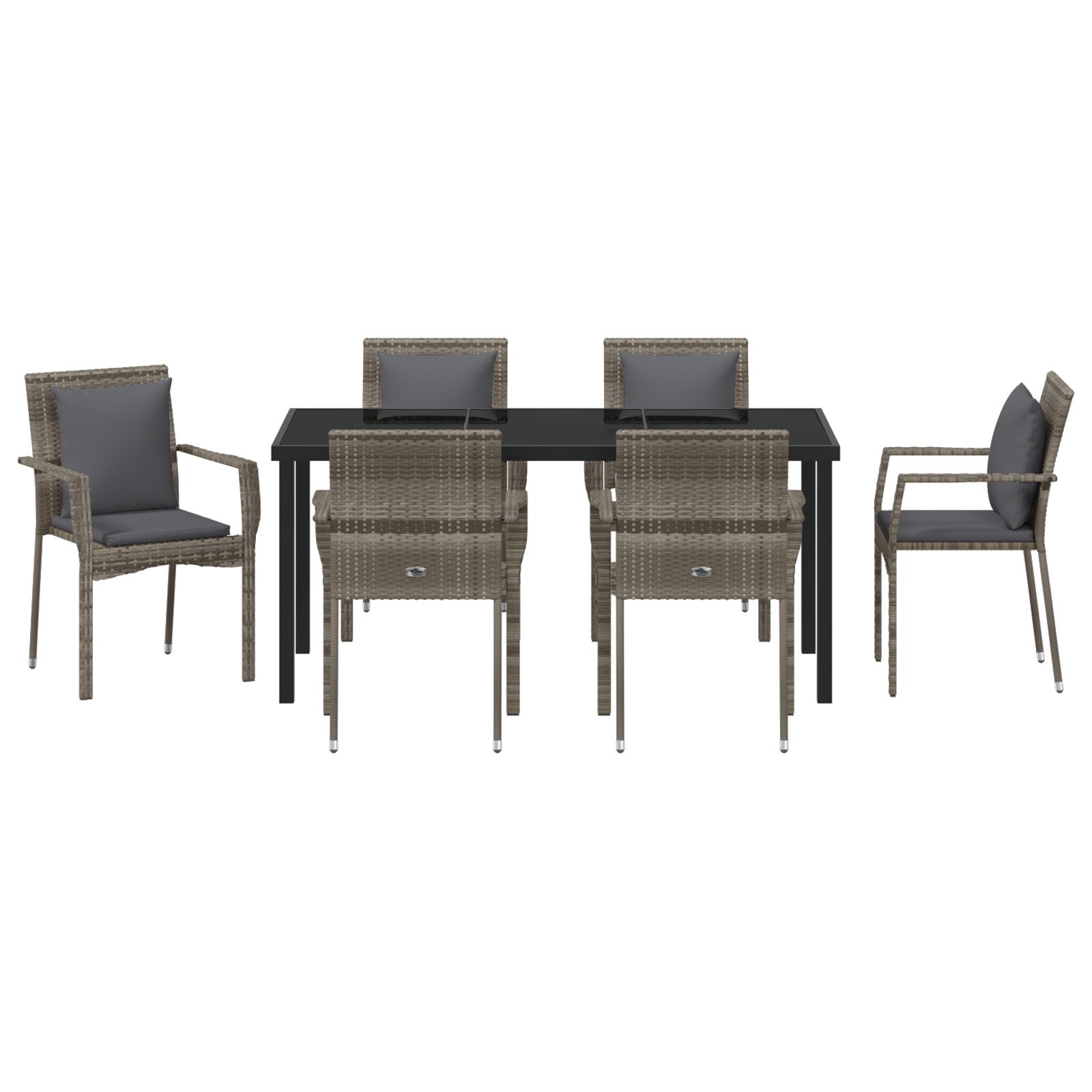 VidaXL 7-dielna súprava jedálenského nábytku so vankúšmi Sivý poly ratan