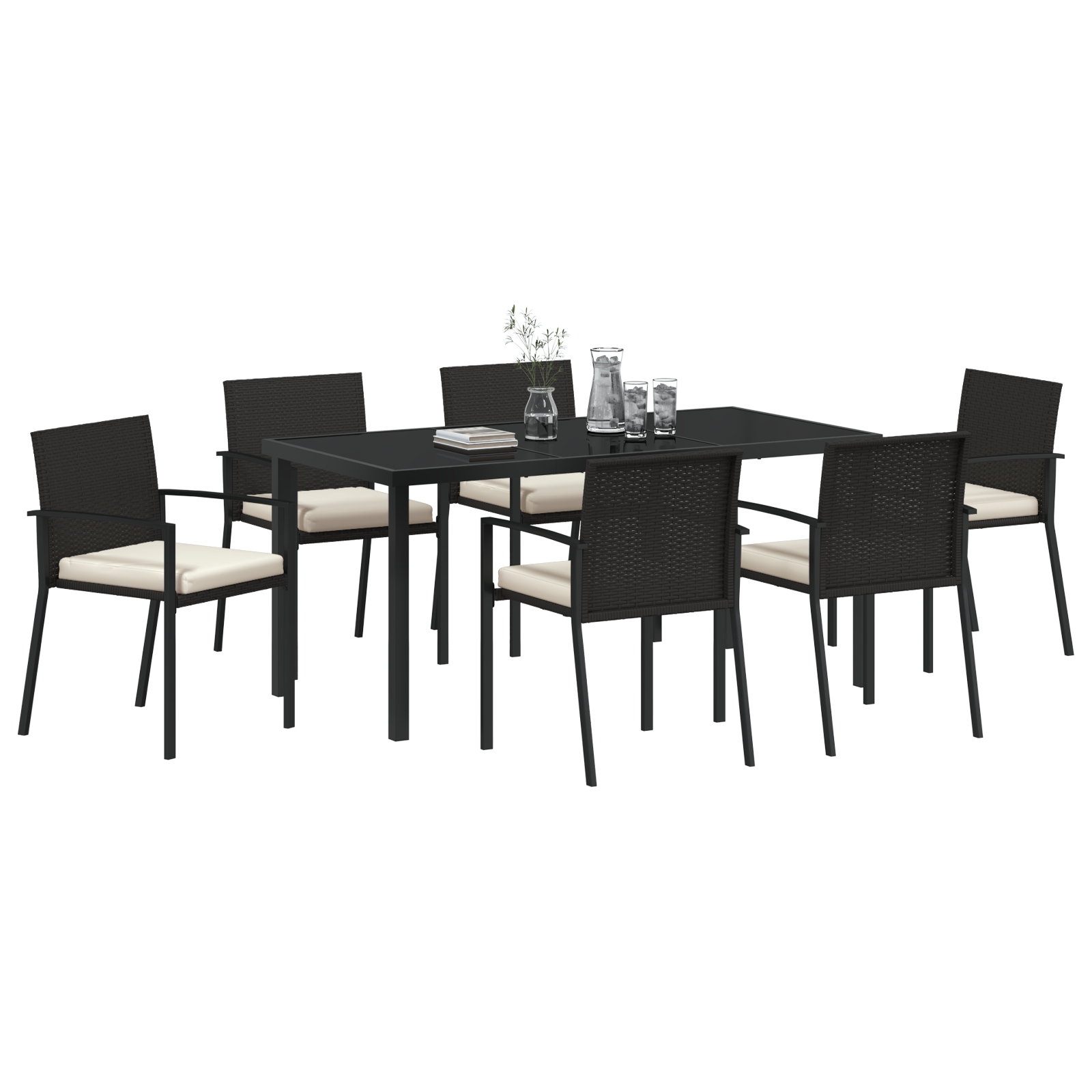 vidaXL 7-dielna záhradná jedálenská súprava Čierna poly ratan