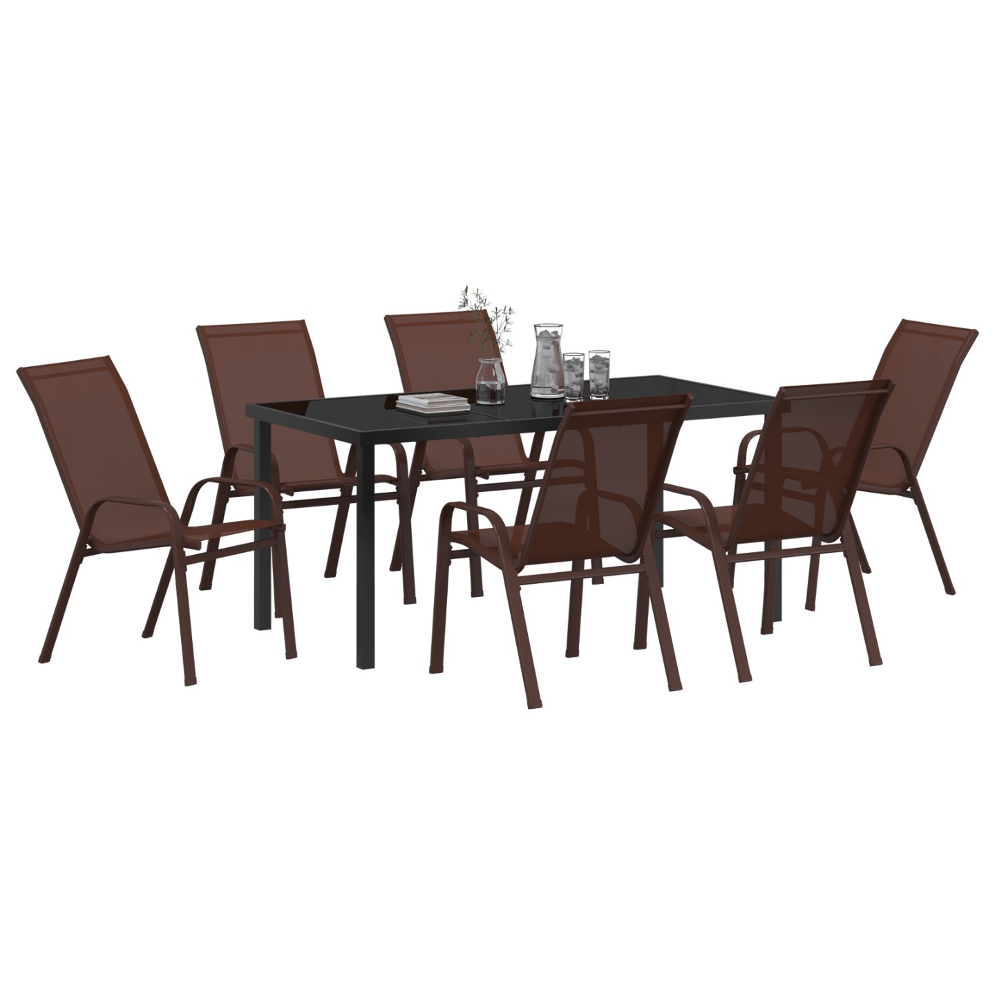 Táto 7-dielna záhradná jedálenská súprava je ideálna na vonkajšie stolovanie, prináša eleganciu a funkčnosť do tvojho priestoru. S moderným hnedým oceľovým vzhľadom skvele oživí vašu vonkajšiu oblasť a pohodlne sa do nej zmestí šesť ľudí.