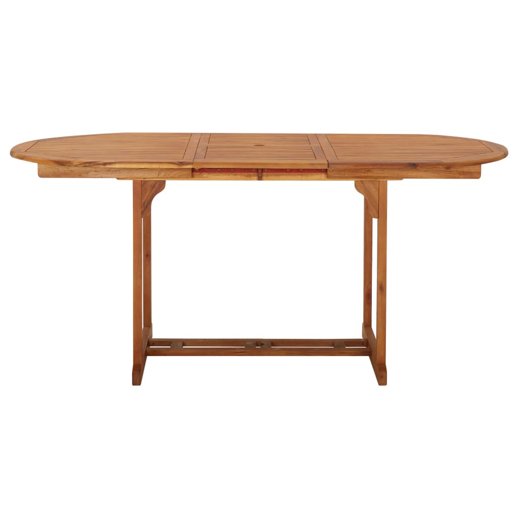 Jedálenský stôl je vyrobený z masívneho akáciového dreva, vďaka čomu je pevný a stabilný. Vďaka olejmi upravenému povrchu je vhodný aj na vonkajšie použitie. Jedálenské stoličky s oceľovým rámom potiahnutým PE ratanom odolným voči poveternostným vplyvom sú pevné a ľahko sa čistia. Husto polstrované podušky tiež dodávajú extra pohodlie pri sedení.