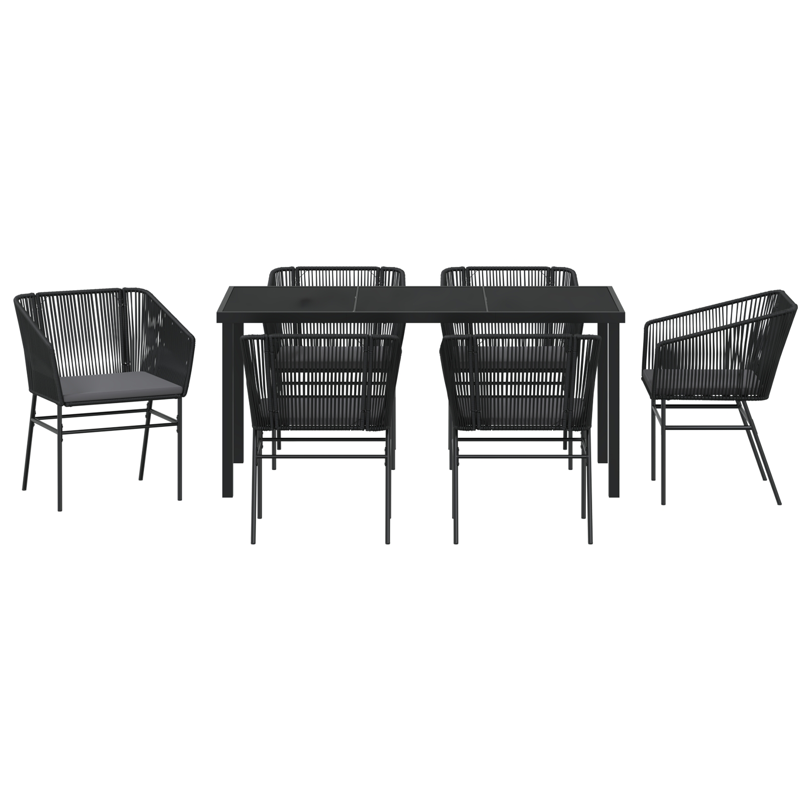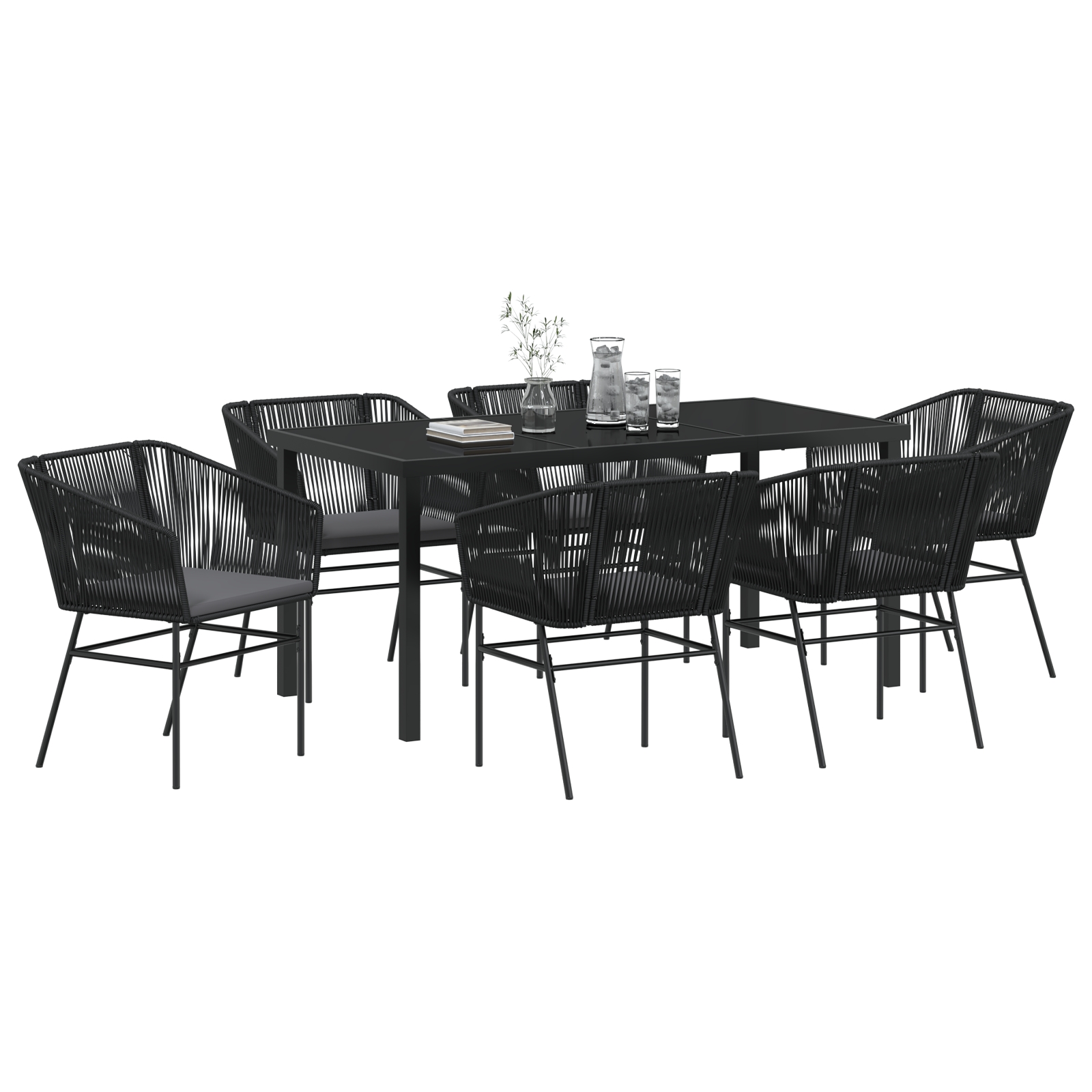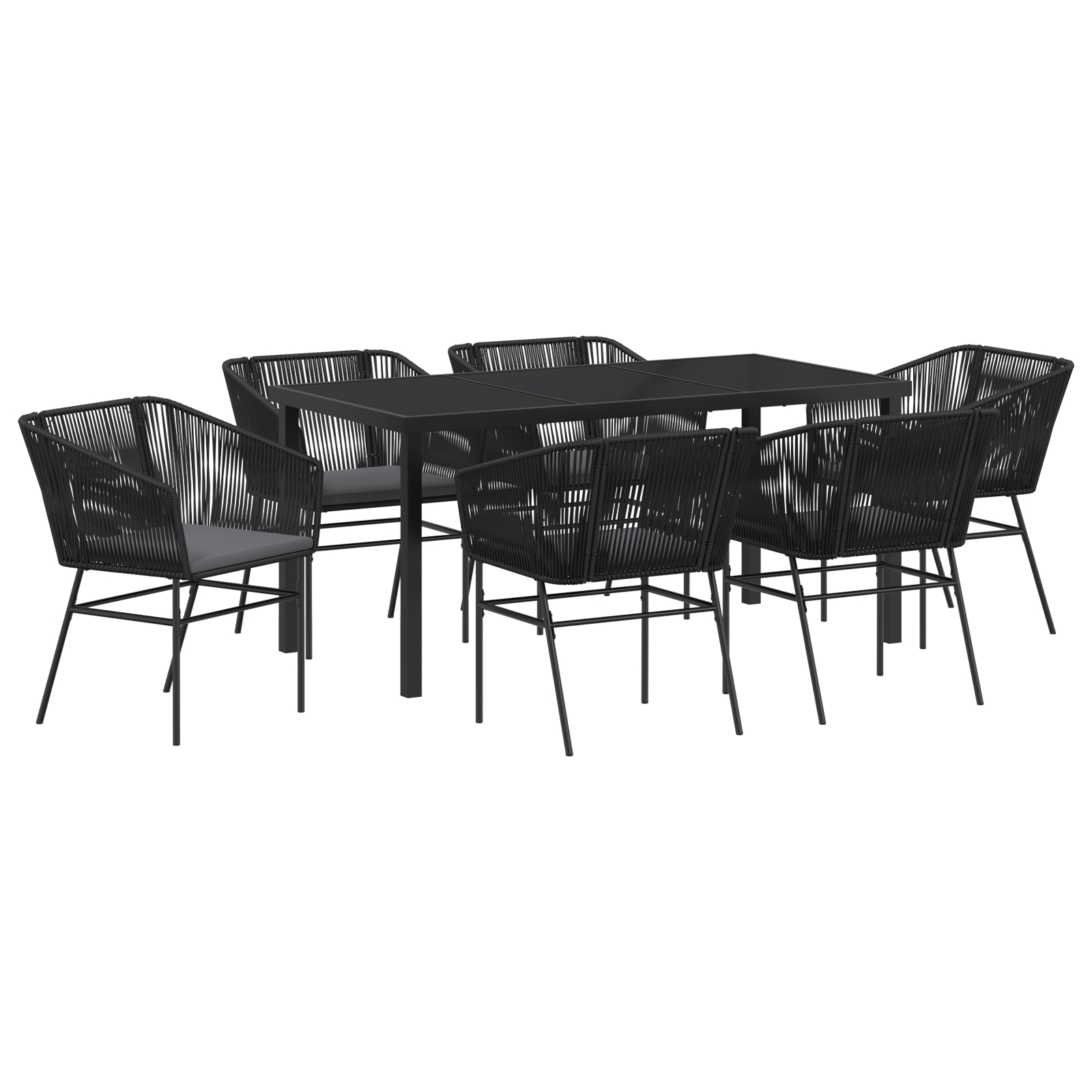 vidaXL 7-dielna záhradná jedálenská súprava s vankúšmi čierna polyratan