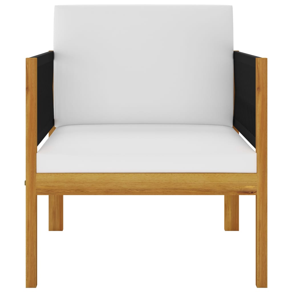 Záhradná súprava je vyrobená z vvysokokvalitného akáciového masívu, tropického tvrdého dreva, ktoré je odolné voči poveternostným vplyvom a veľmi trvácne. Nábytok na terasu je ošetrený olejovým náterom, ktorý mu dodáva teplý farebný odtieň a vďaka ktorému sa ľahko čistí a udržiava. Súčasťou balenia sú aj podložky na sedadlo a operadlo s hustou výplňou, ktoré prinášajú dokonalé pohodlie pri sedení.