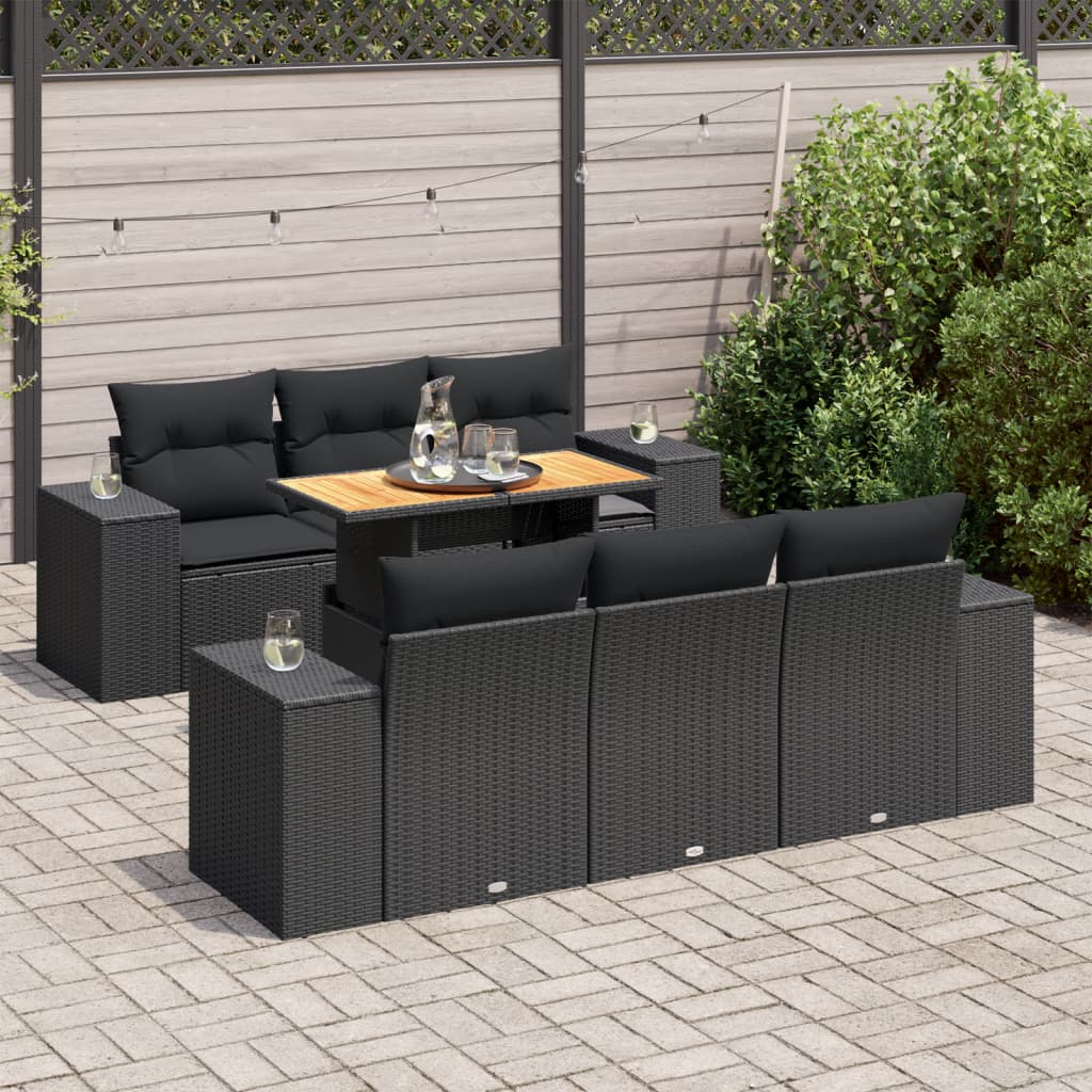 vidaXL 7-dielna záhradná súprava pohoviek s vankúšmi čierna polyratan