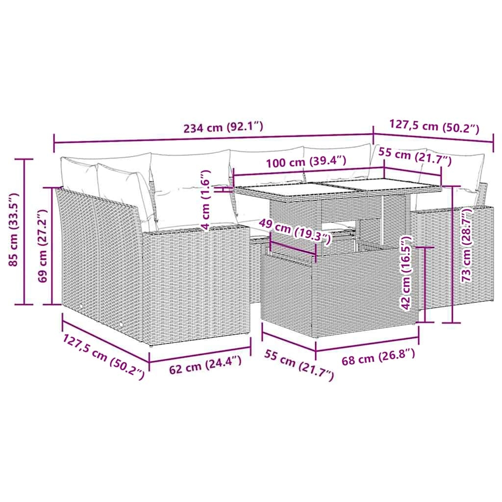vidaXL 7-dielna záhradná súprava pohoviek s vankúšmi polyratan akácia