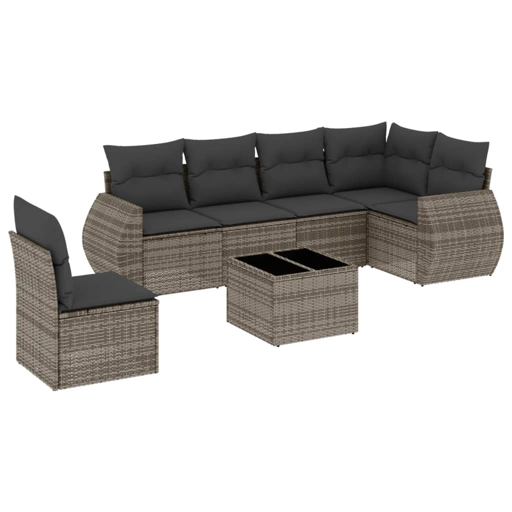 vidaXL 7-dielna záhradná súprava pohoviek s vankúšmi sivá polyratanová
