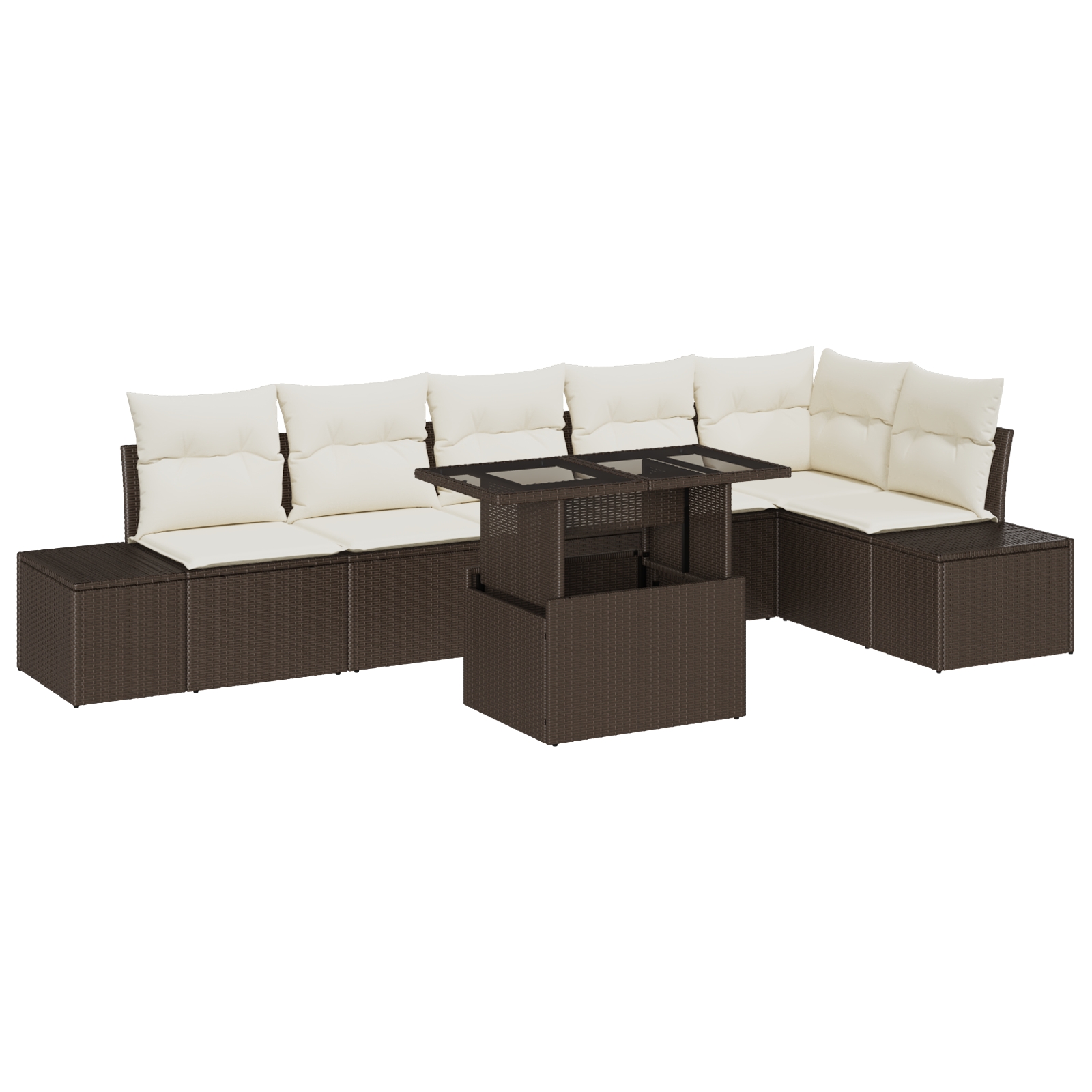 vidaXL 7-dielny gaučový set s vankúšmi Hnedý PE Ratan