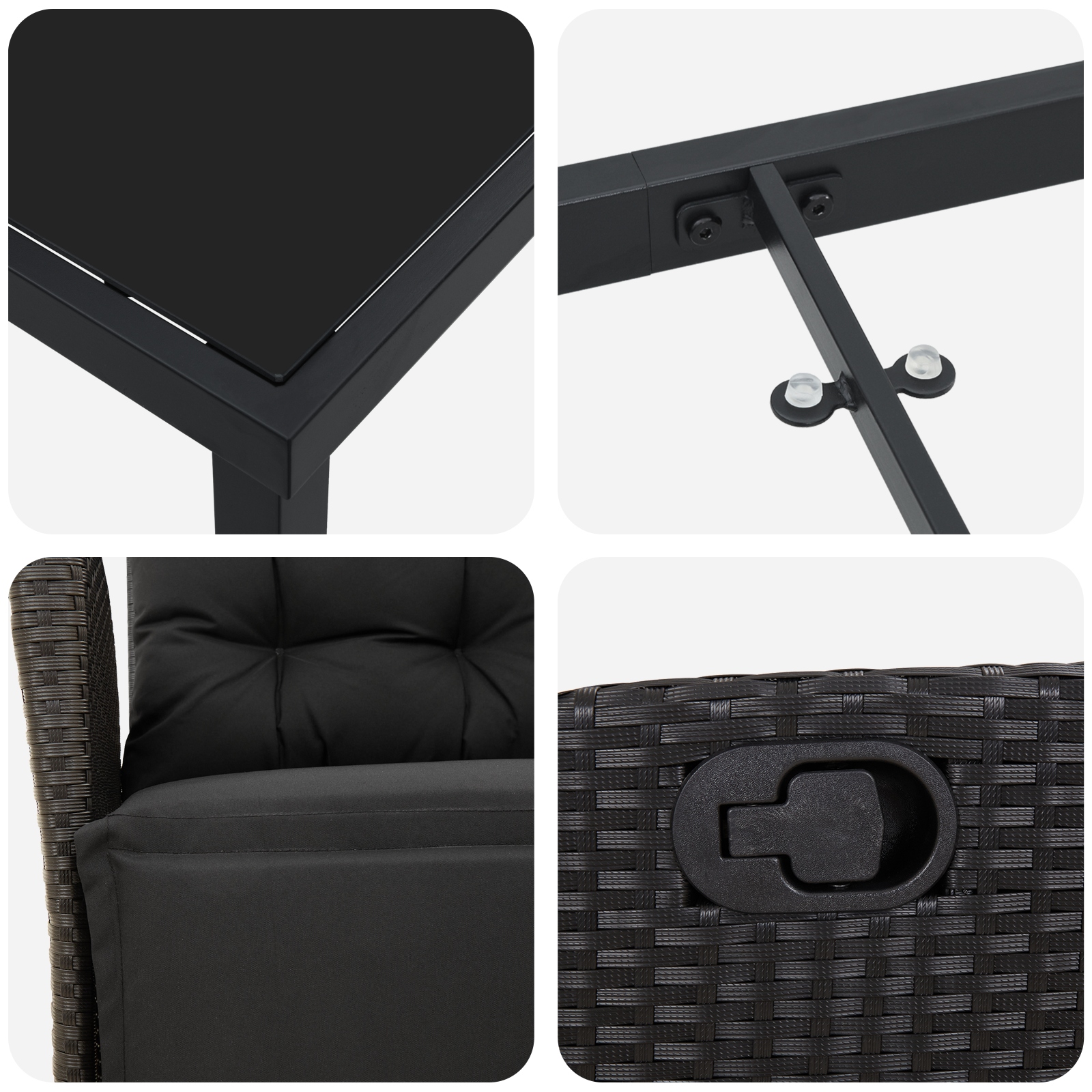• Štýlová Estetika: Elegantný čierny poly ratan a krémové vankúše vytvárajú moderný vzhľad, ktorý sa hodí do rôznych vonkajších prostredí, kombinujú skvelý dizajn a funkčnosť.