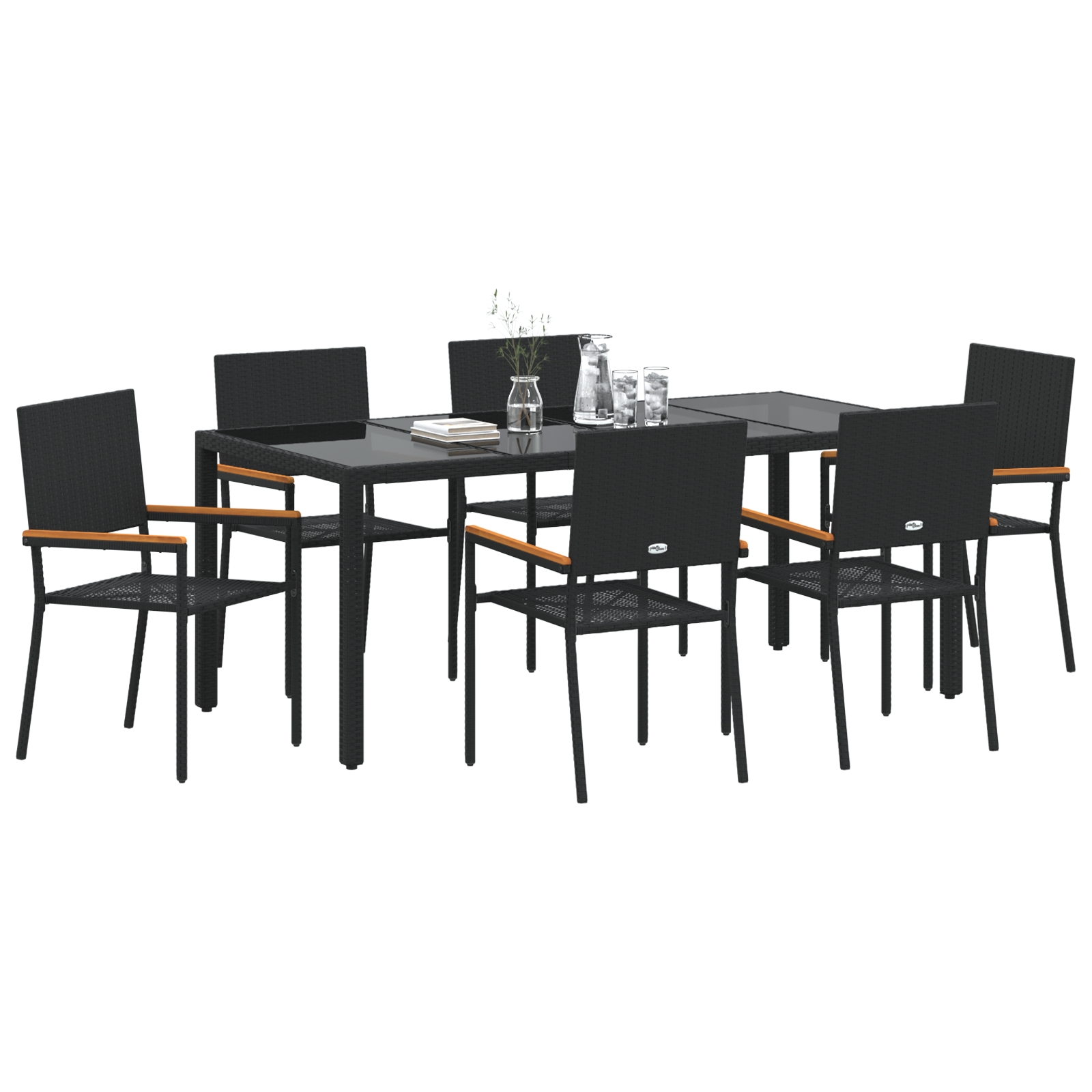 Tento priestranný záhradný jedálenský set spája štýl a praktickosť. Moderný vzhľad je ideálny na vonku. Elegantný čierny povrch spolu s poly ratanovou doskou a matným oceľovým rámom robí z neho perfektný kúsok na väčšie stretnutia vo vašej záhrade alebo na terase.