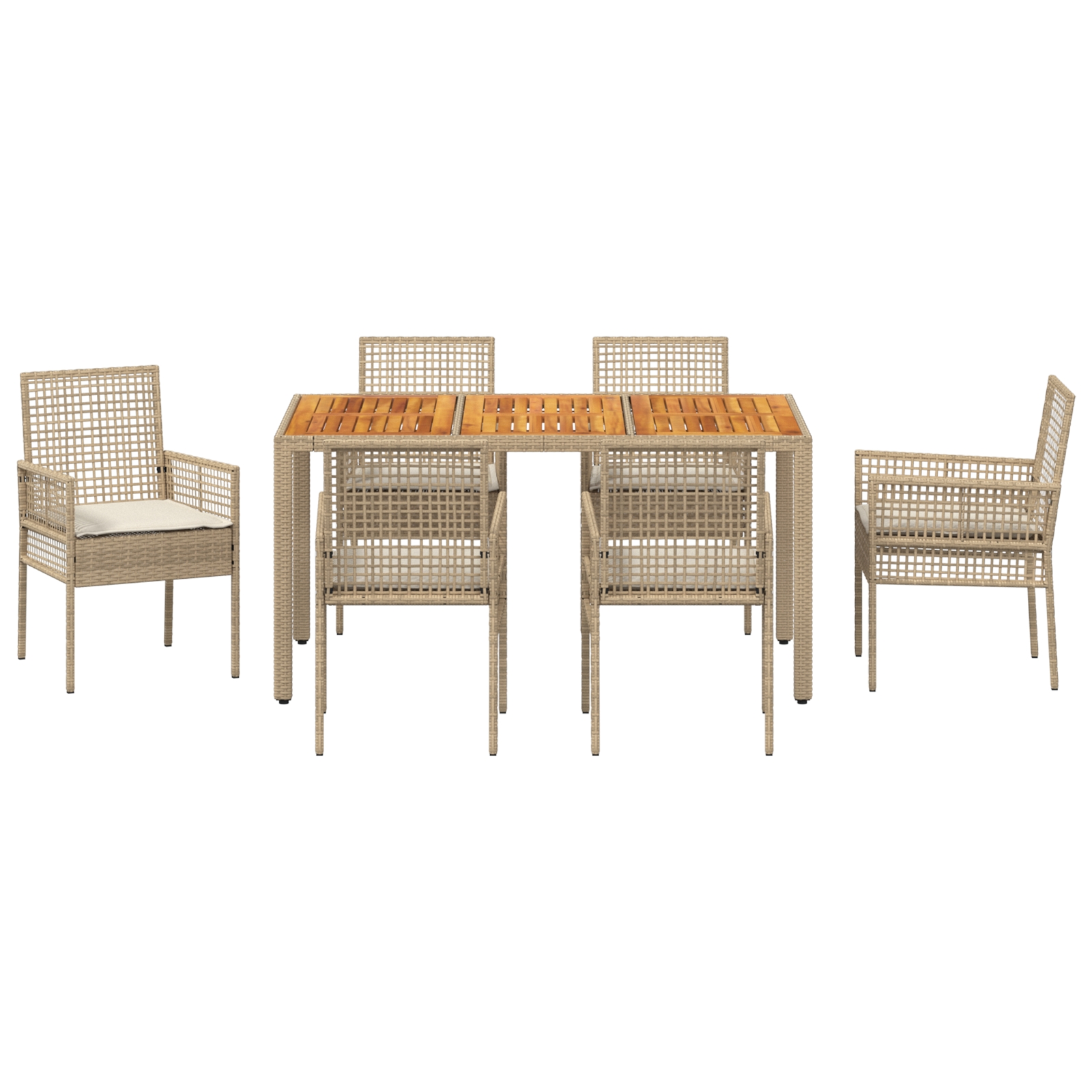 vidaXL 7-dielny záhradný jedálenský set s vankúšmi Béžový Poly ratan