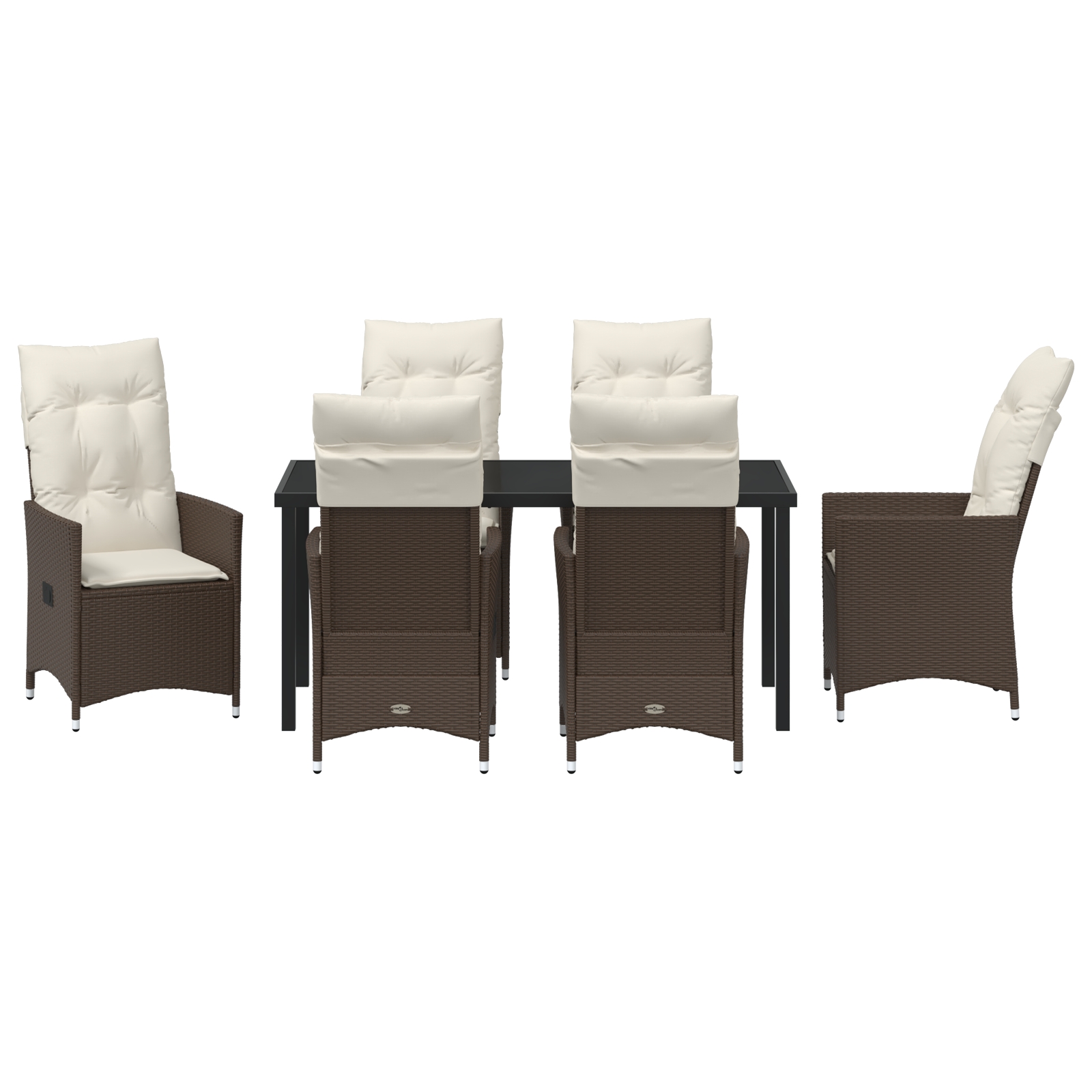 vidaXL 7-dielny záhradný jedálenský set s vankúšmi hnedý poly ratan