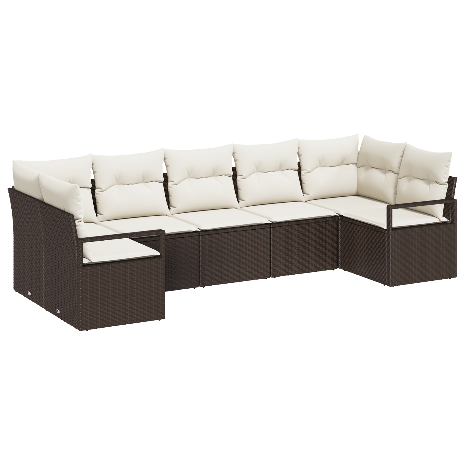 vidaXL 7-dielny záhradný pohovkový set s vankúšmi hnedý poly ratan