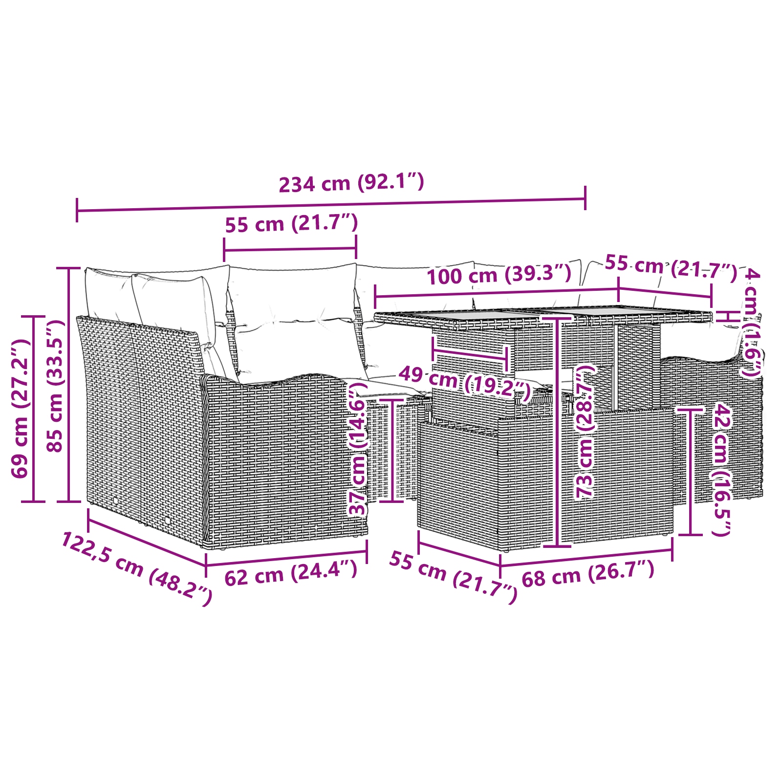 vidaXL 7-kusová záhradná pohovka so vankúšmi béžová poly ratan