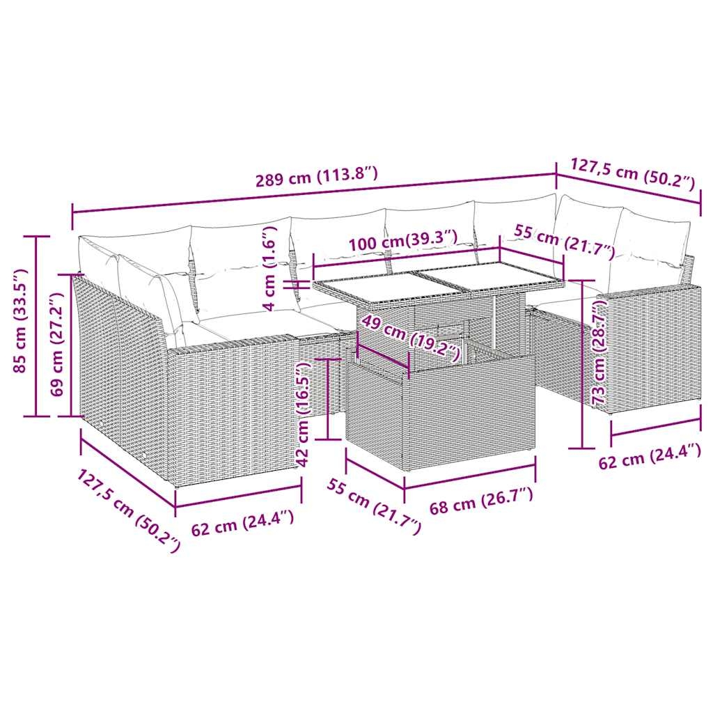 vidaXL 8-dielna záhradná súprava pohoviek s vankúšmi polyratan akácia