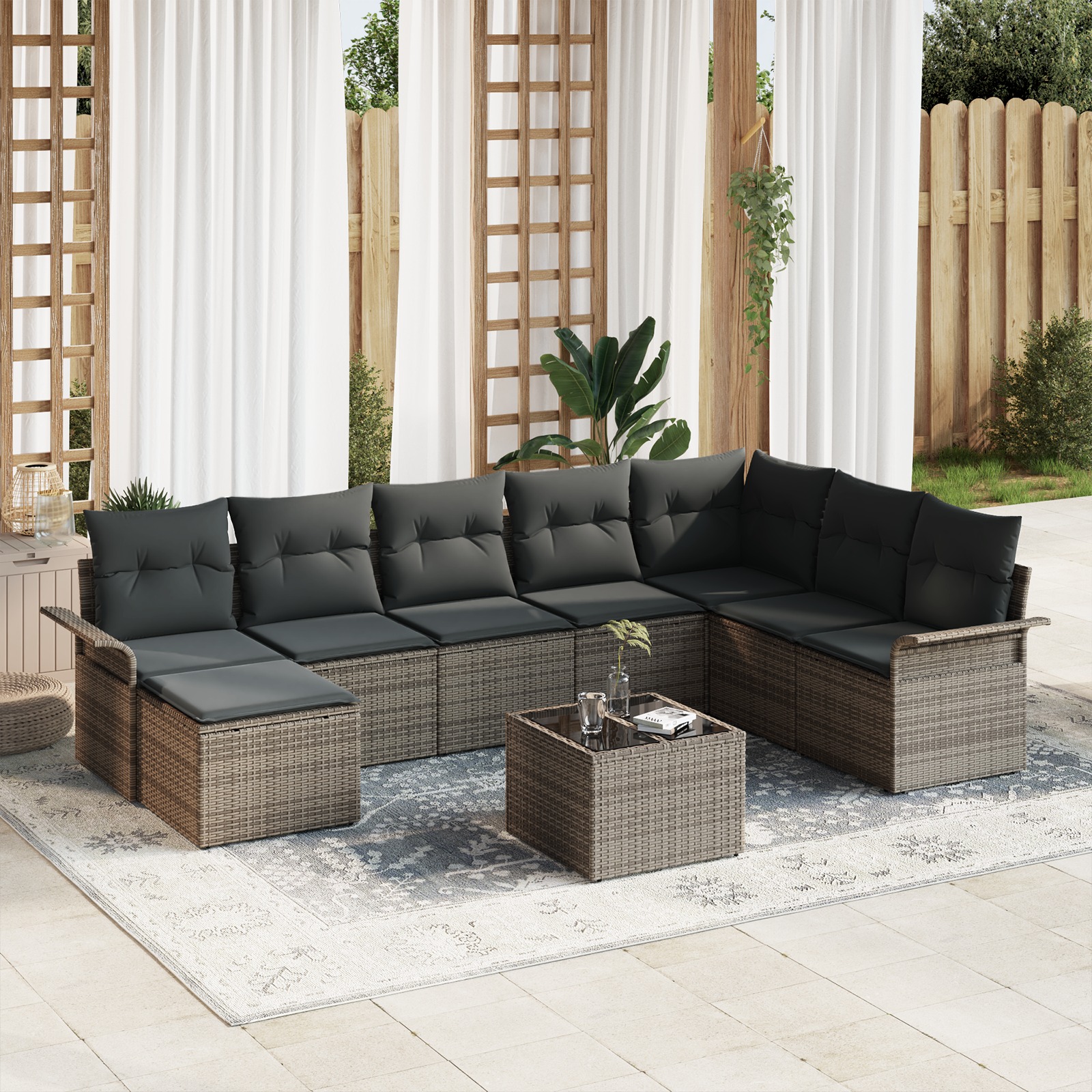 vidaXL 8-dielny záhradný gaučový set s vankúšmi Sivý poly ratan