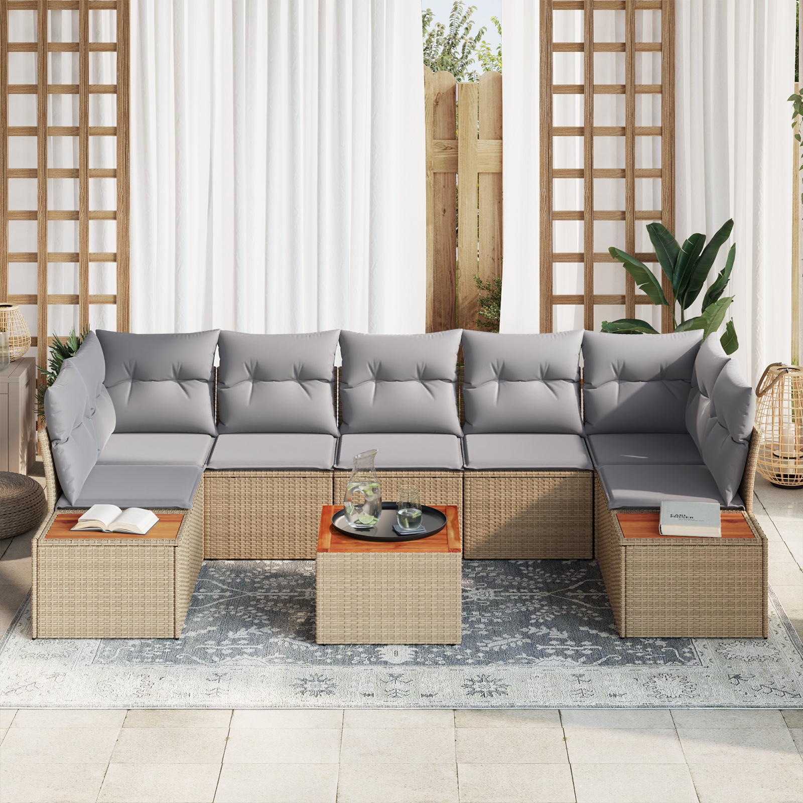 vidaXL 8 kusová záhradná sedačka s vankúšmi béžová poly ratan akácia