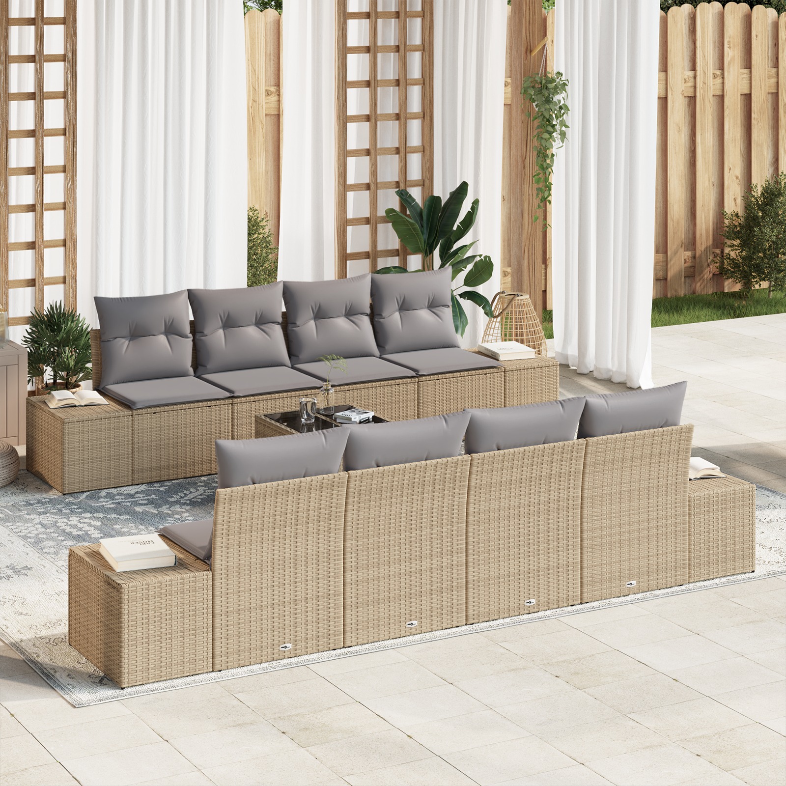 Táto súprava záhradného gauča kombinuje pohodlie a štýl, ideálna na vylepšenie tvojej vonkajšej plochy. S chic béžovým poly ratanovým rámom a pohodlnými sivými vankúšmi, pojme až šesť osôb—skvelé na stretká, rodinné jedlá či len tak na chill. Moderný zemský design sa hodí do každého vonkajšieho prostredia. Využi túto flexibilnú súpravu na vytvorenie vítajúcich miest na tvojej terase alebo balkóne a ohrom svojich hostí jej skvelým vzhľadom.