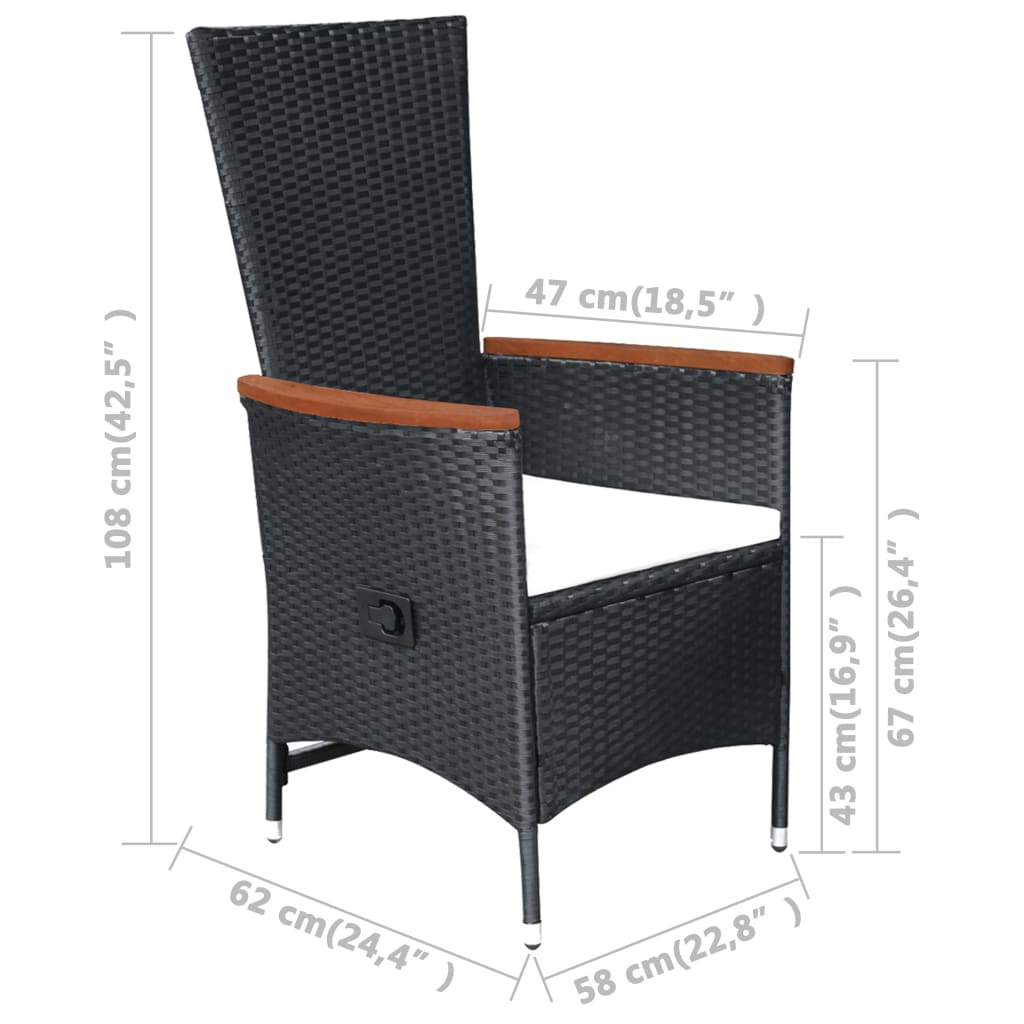 vidaXL 9-dielna vonkajšia jedálenská súprava+podložky,polyratan,čierna