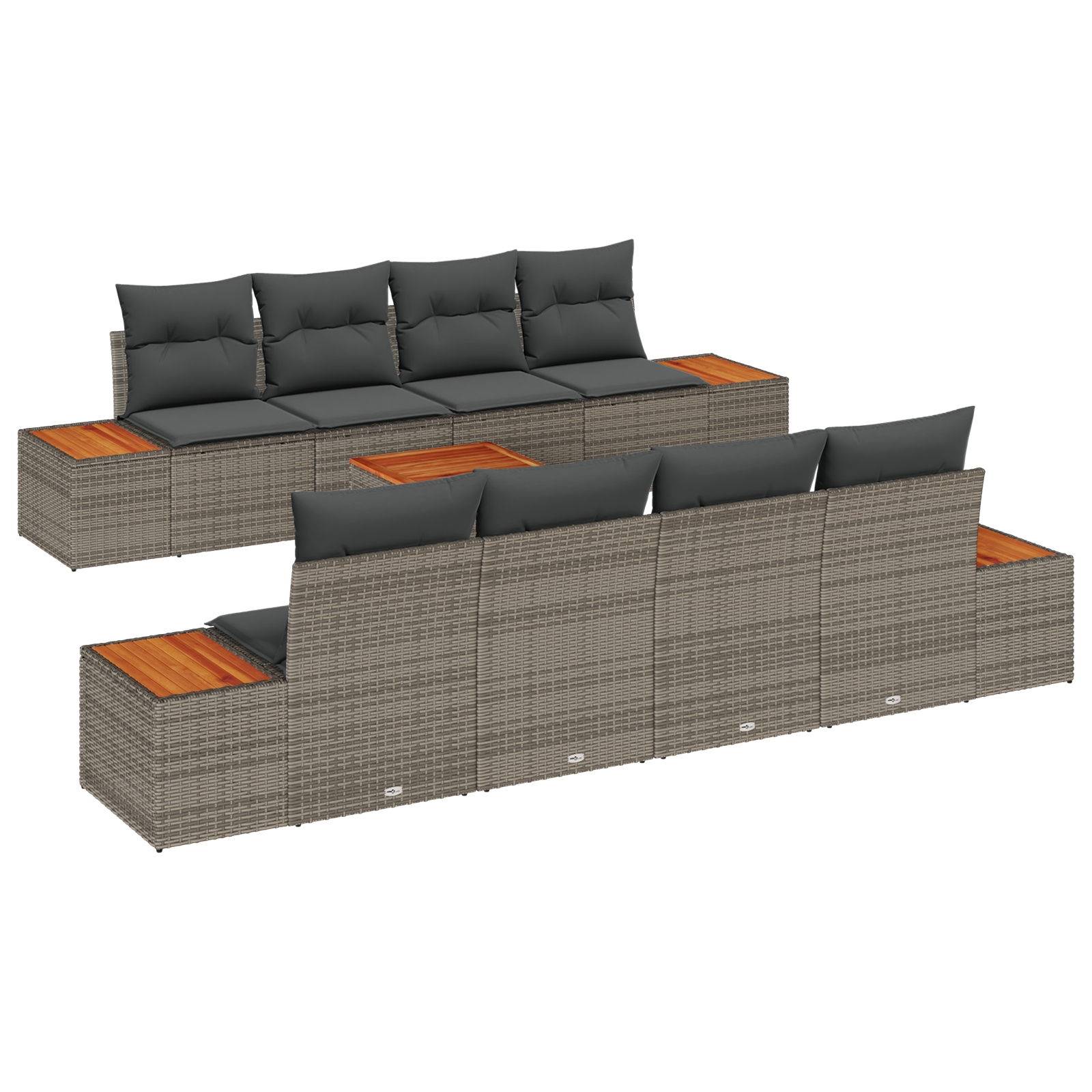 vidaXL 9-dielna Záhradná Sedacia Súprava s Vankúšmi Sivá Polyratan Akácia