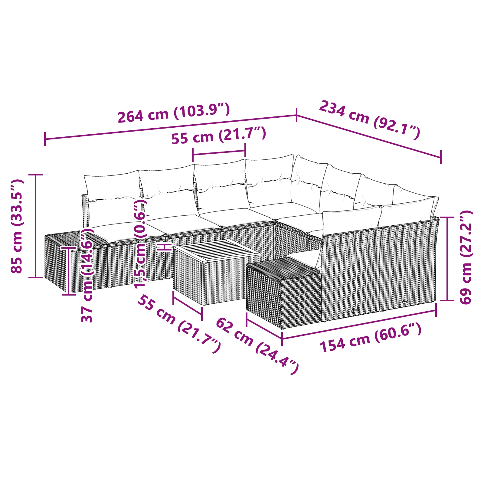 Táto 9-dielna súprava záhradných gaučov s vankúšmi premení akýkoľvek vonkajší priestor na úžasné miesto na oddych, ktoré ponúka pohodlie a relax. Perfektné na terasy, záhrady alebo balkóny, je stvorená na socializovanie s priateľmi a rodinou – ideálne na vytváranie vzácnych spomienok.