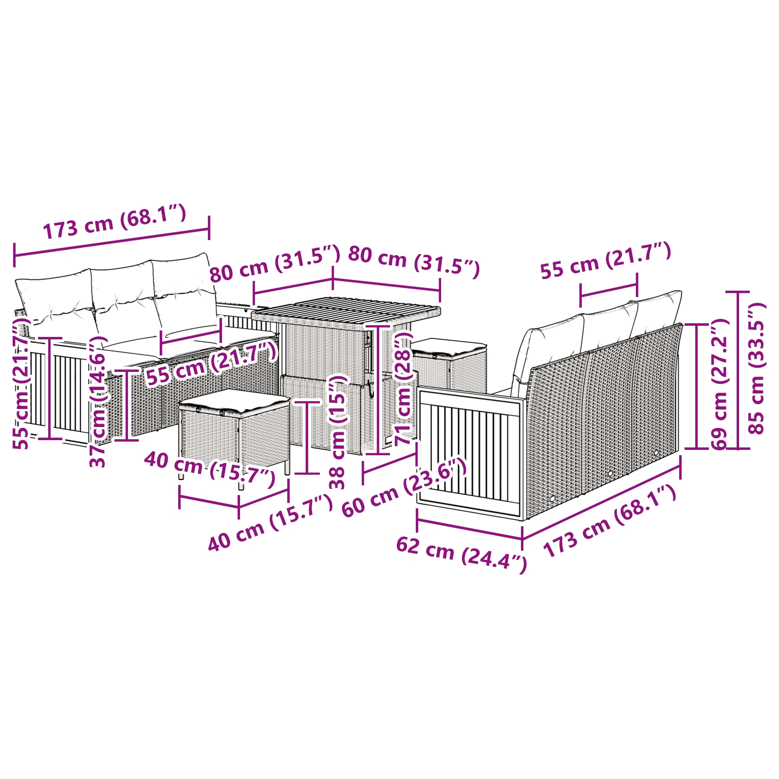 vidaXL 9-dielna záhradná súprava pohovky s vankúšmi béžová poly ratan akácia