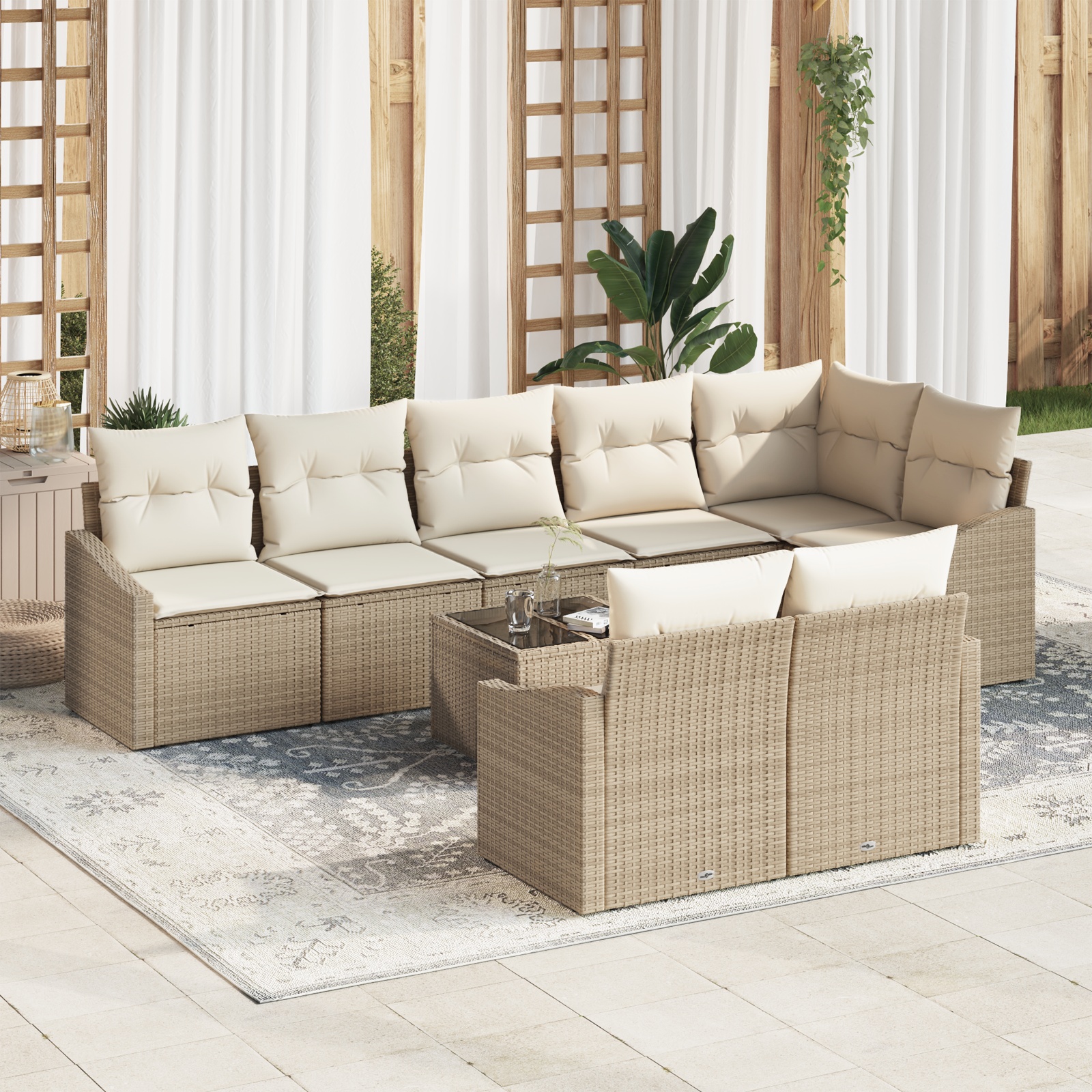 • Štýlový vzhľad: Hnedý poly ratanový povrch a béžové vankúše vytvárajú skvelý kontrast, ktorý ozvláštni akýkoľvek vonkajší priestor.