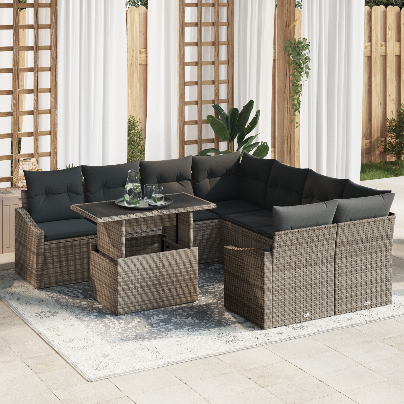 vidaXL 9-dielny súbor záhradných pohoviek s vankúšmi šedý poly ratan