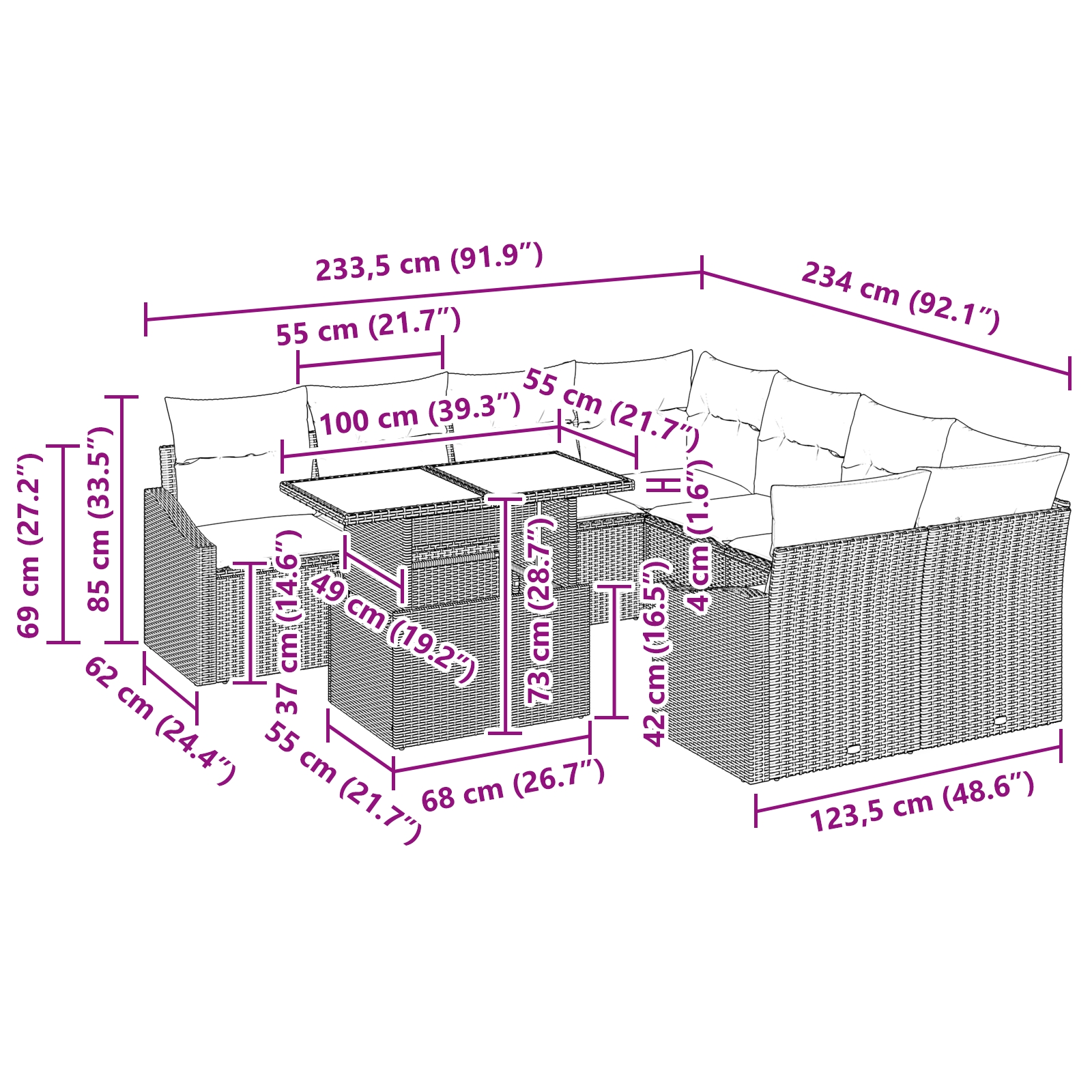 • Delivery Contains: 2 x Corner seat, 4 x Centre seat, 2 x Arm sofa, 1 x Table