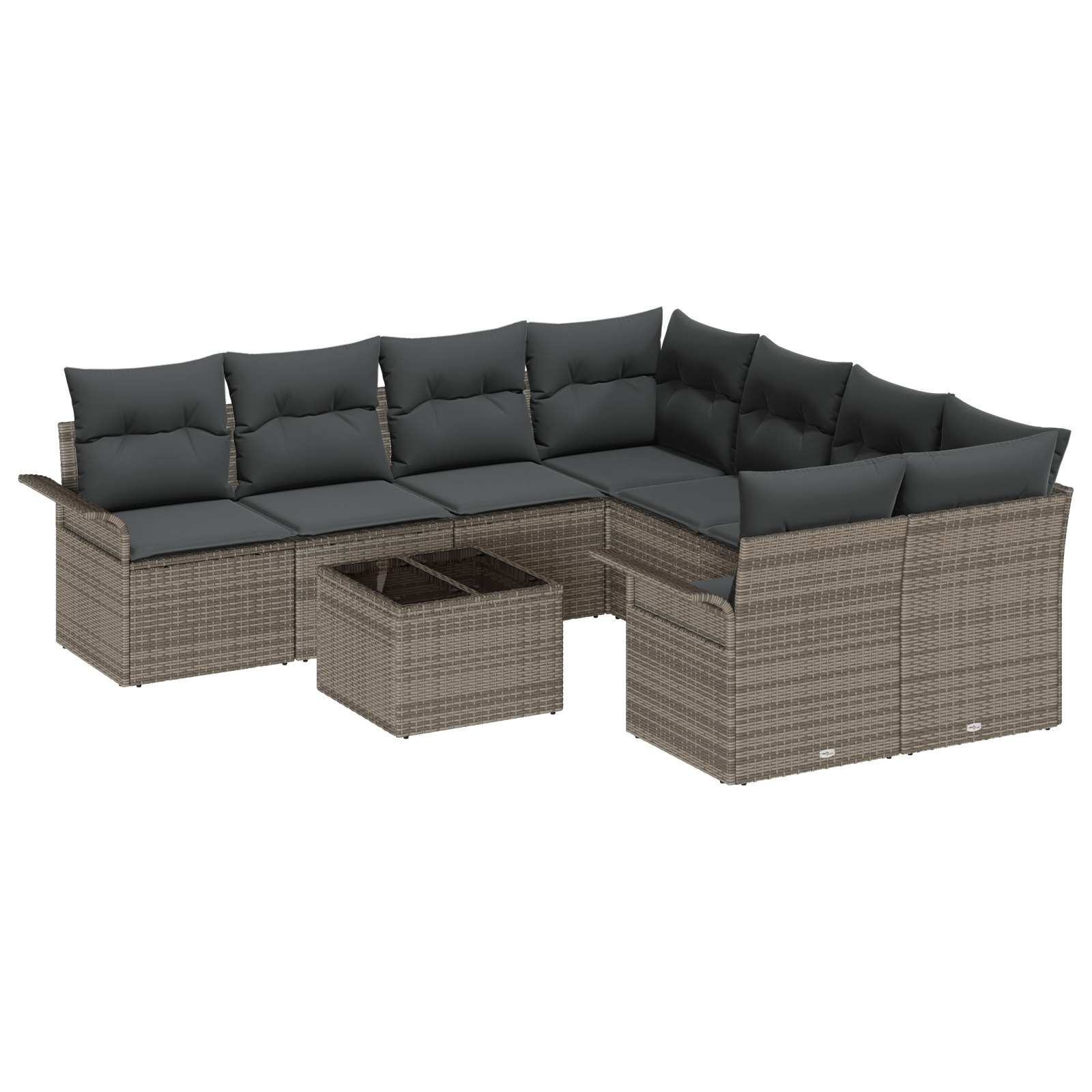 vidaXL 9-dielny záhradný gauč s vankúšmi Sivý Poly ratan