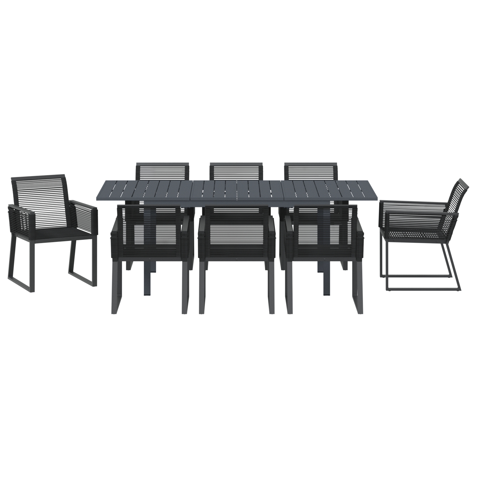 Tento záhradný jedálenský set ti prinesie úžasné zážitky vonku, s dostatkom miesta a pohodlia pre až osem ľudí. S elegantným čiernym dizajnom a poly ratanovými časťami pekne zapadne do rôznych patio štýlov, ideálny pre rodinné jedlá alebo stretnutia s kamarátmi.