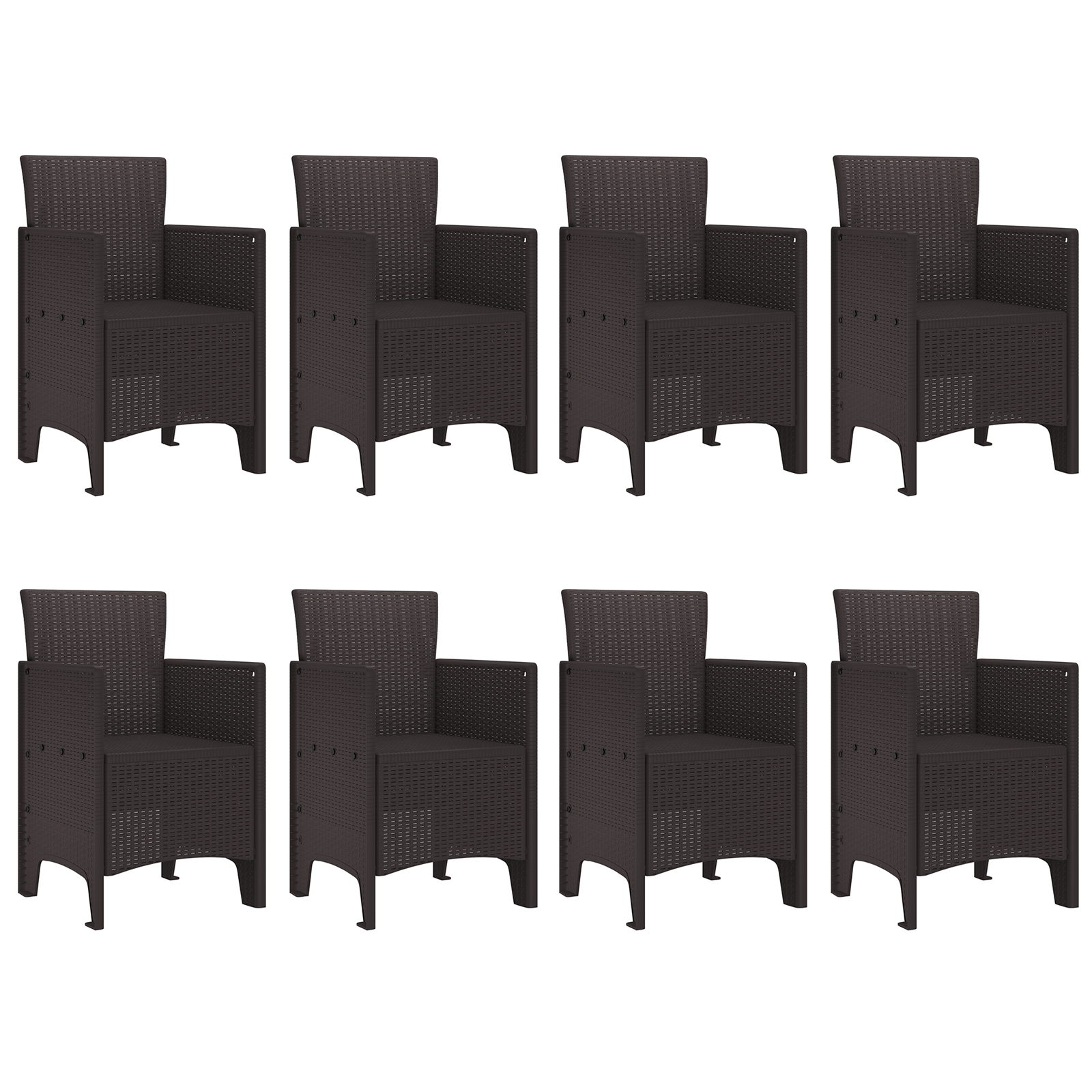 Tento záhradný jedálenský set je vyrobený z odolného poly ratanu. Má veľký obdĺžnikový stôl a osem pohodlných stoličiek, ideálny na vonkajšie stravovanie. So moderným vzhľadom a hnedou farbou oživuje akýkoľvek balkón alebo terasu, vytvára štýlový a praktický priestor na stretnutia, grilovačky a rodinné obedy.
