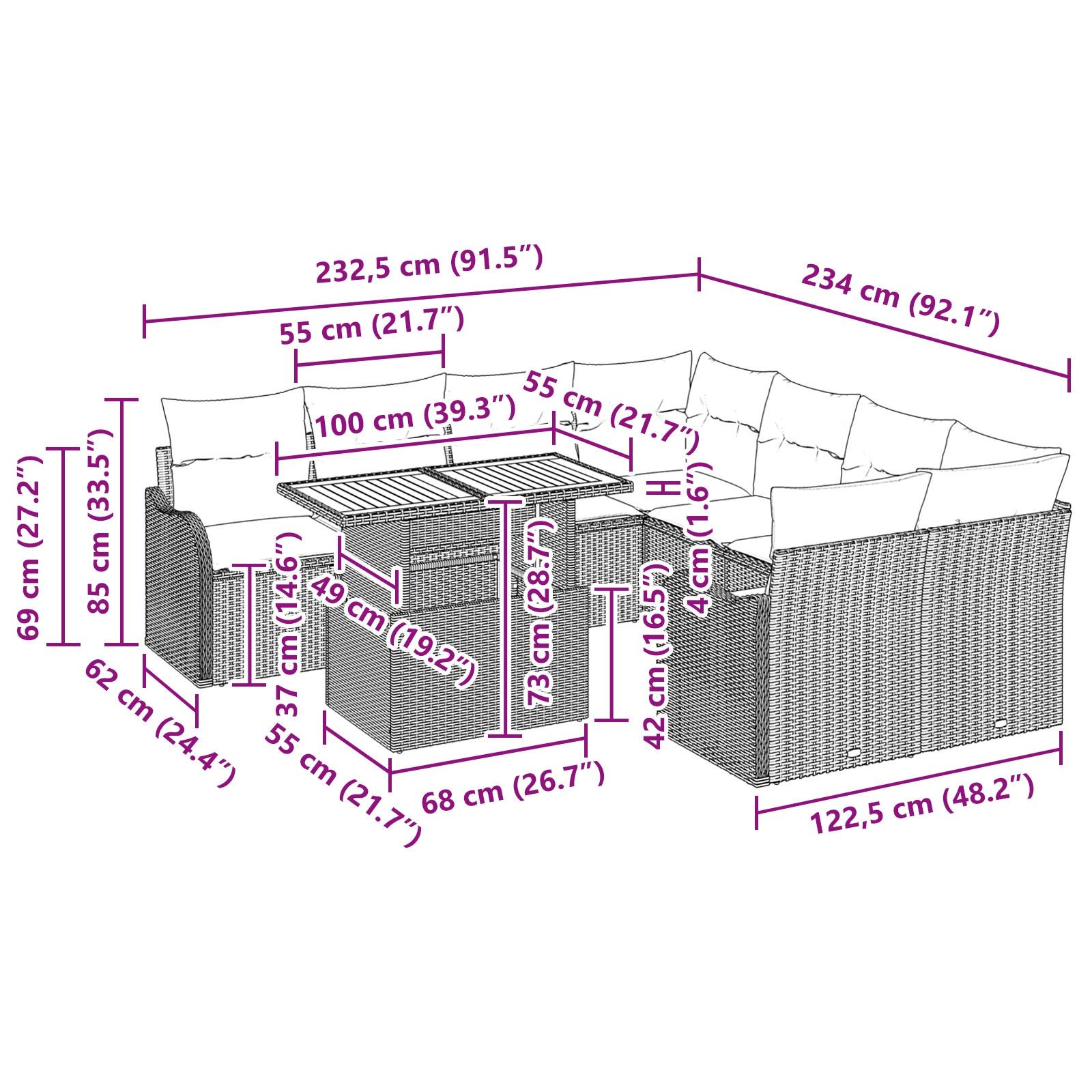 • Pohodlné sedenie: Bohato polstrované sekcie pre pohodlný zážitok a poťahy sú odnímateľné na jednoduché čistenie, aby si mal terasu stále upratanú.