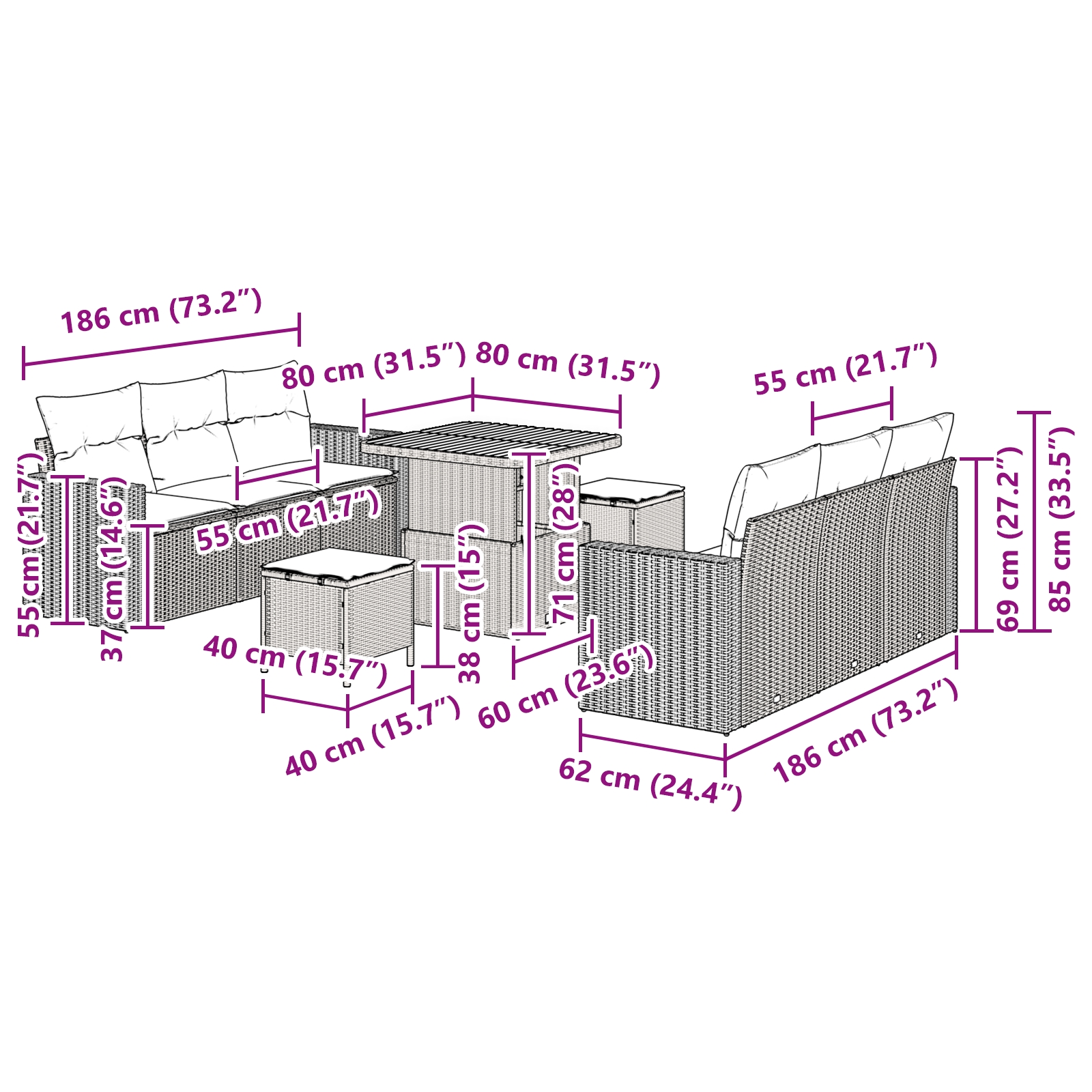 vidaXL 9 ks záhradná pohovka s vankúšmi béžová poly ratan acacia