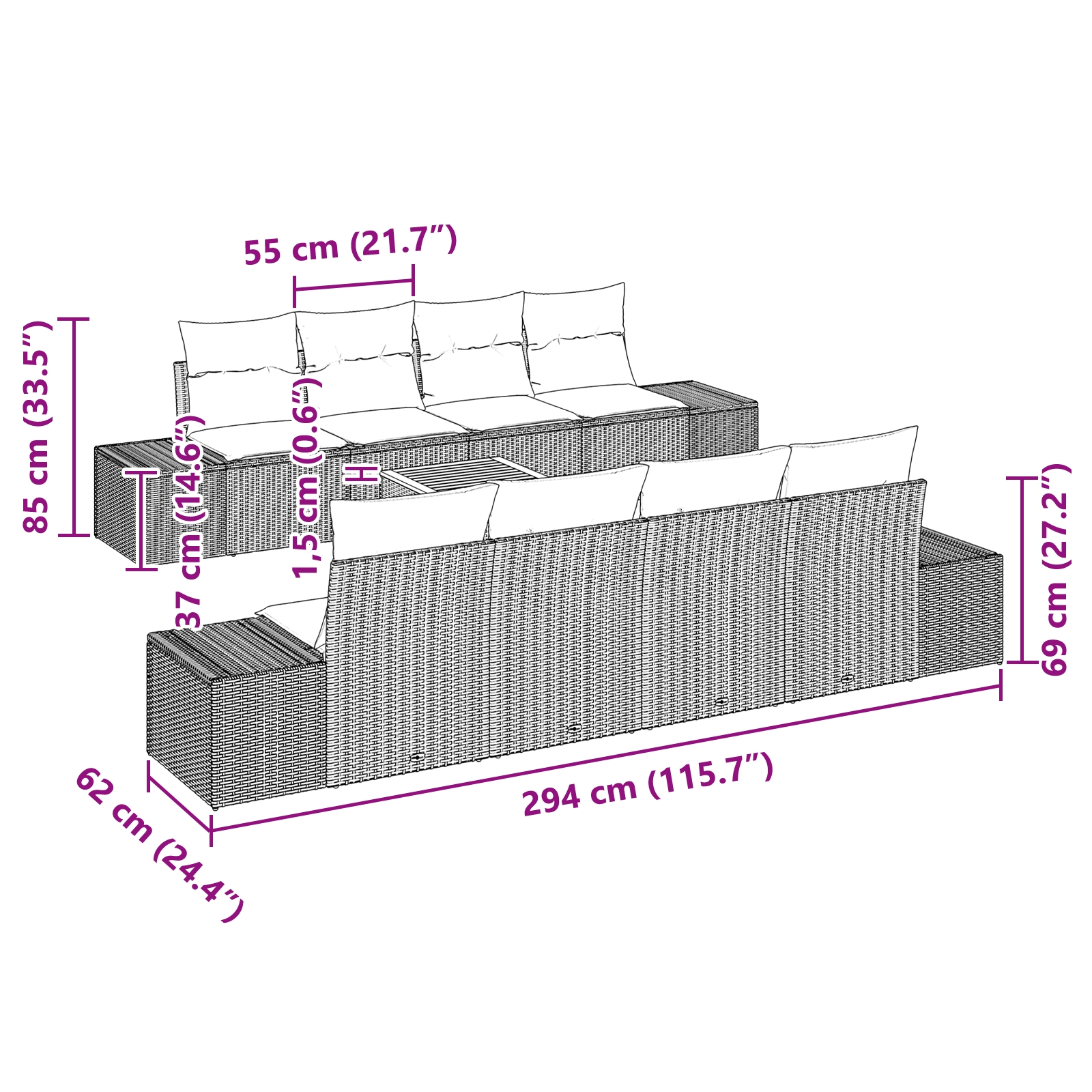 • Seat Depth: 60.00 cm