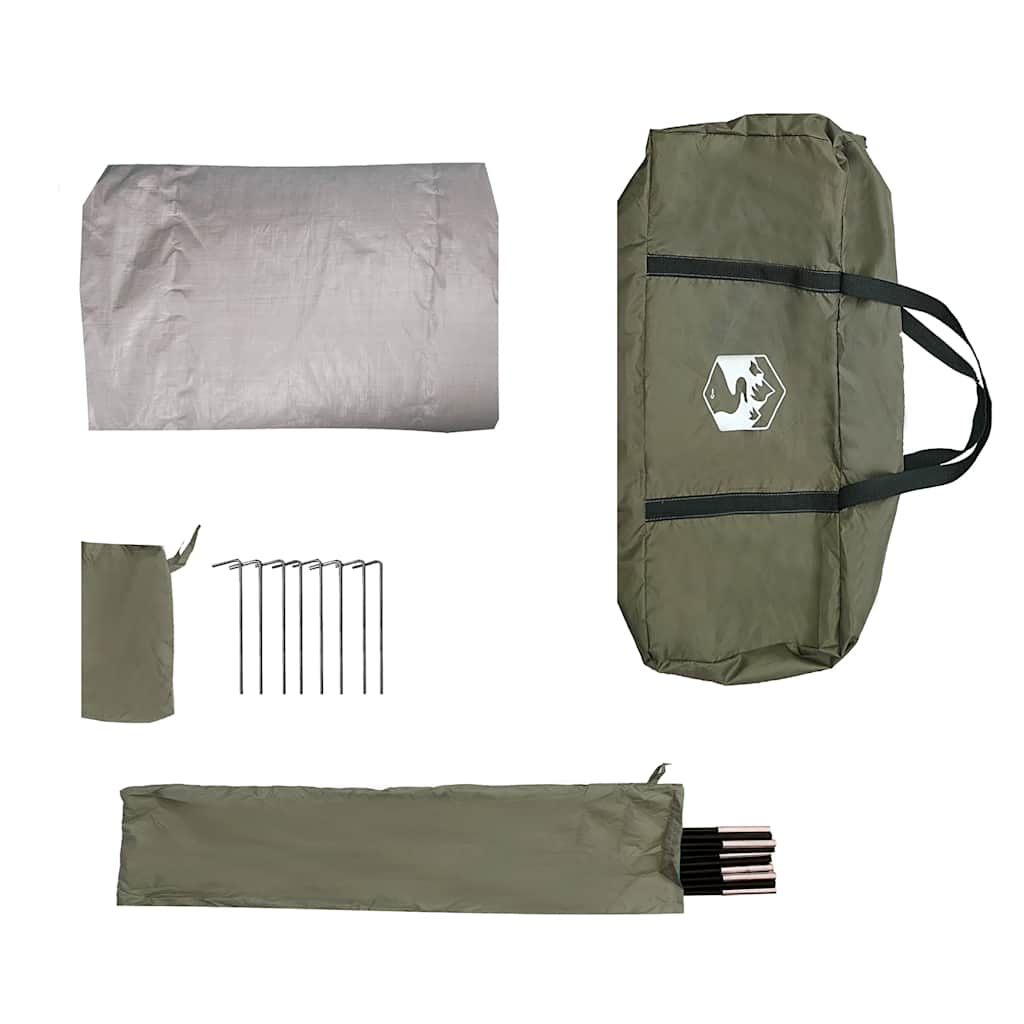 • Jednoducho sa stavia: Stan obsahuje robustné tyče a popruhy, pomocou ktorých ho jednoducho upevníte do zeme a pripevníte k autu, takže nebudete musieť hľadať kamene či iné ťažké predmety, aby ste ho spoľahlivo zaťažili.